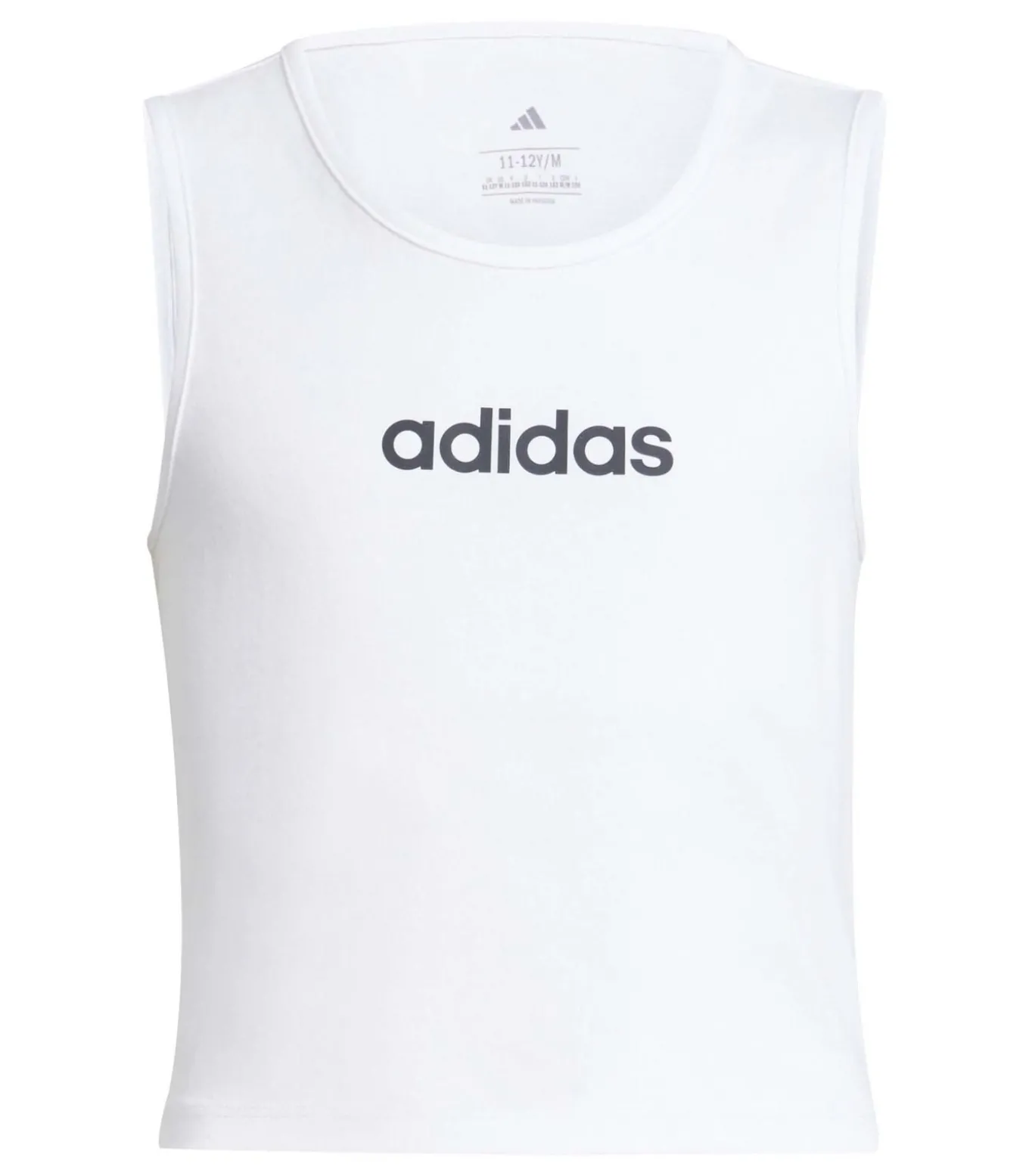 Kleur: Wit Samenstelling: 100% katoen Mouwen: Mouwloos Halslijn: Ruim Pasvorm: Normaal Details: Het adidas Essentials Junior tanktopje is een veelzijdig en comfortabel kledingstuk, ideaal voor warmere dagen. De zachte katoenen jersey voelt natuurlijk aan op de huid en is ideaal om zowel binnen als buiten te dragen. Je kunt het gemakkelijk combineren met shorts en rokken en het is de ideale keuze voor een frisse en relaxte look bij elke gelegenheid. Gebruik: Perfect voor de vrije tijd in de zomer, lichte activiteiten en momenten van ontspanning. Geschikt voor alle jonge vrouwen die op zoek zijn naar functionaliteit en een casual stijl in één kledingstuk.