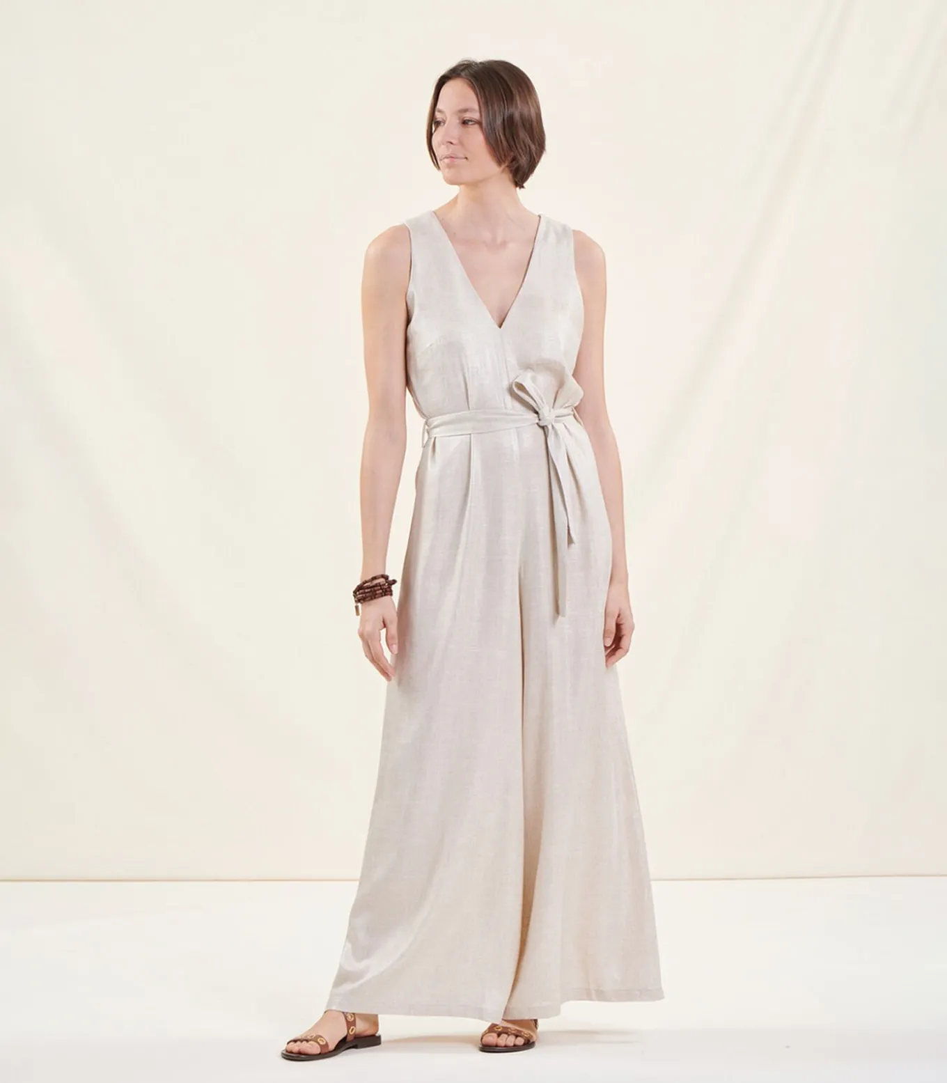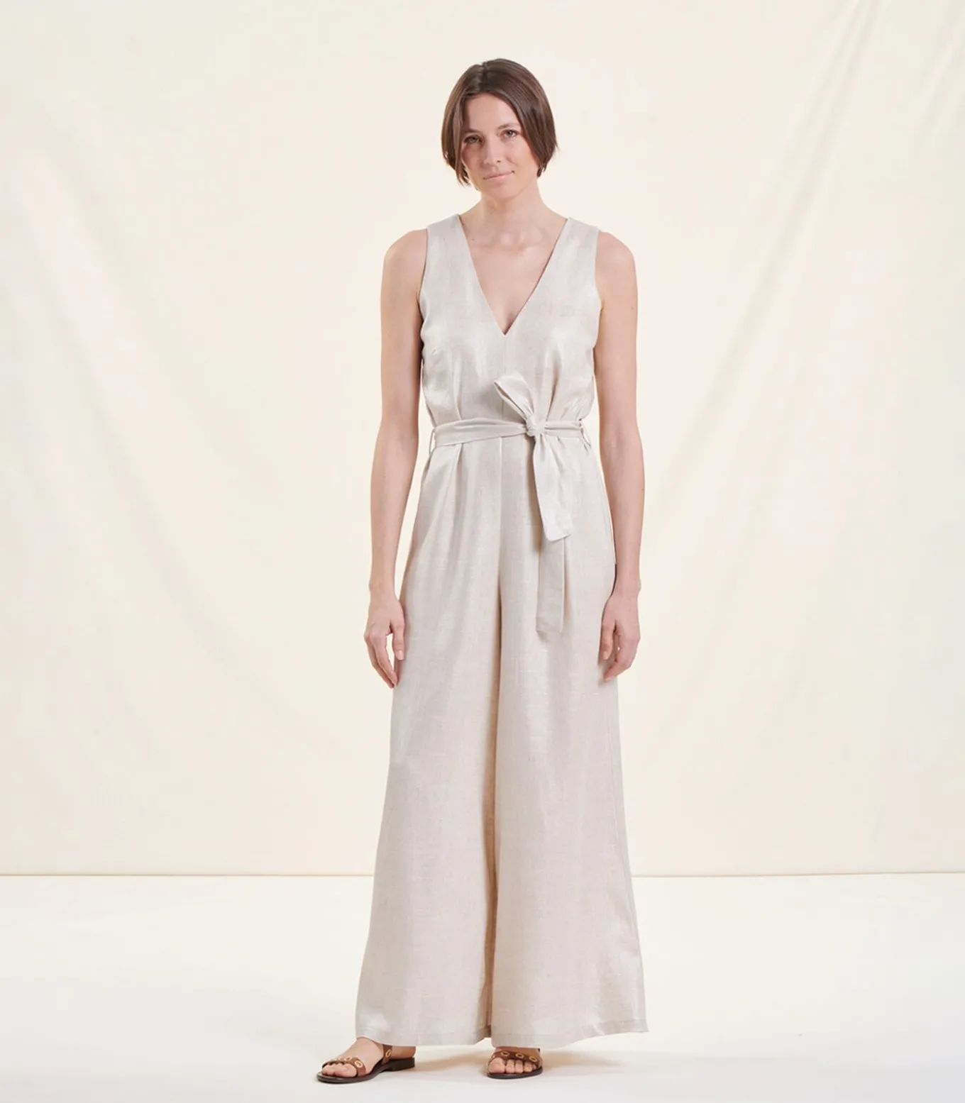 Jumpsuit met V-hals zonder mouwen van linnen