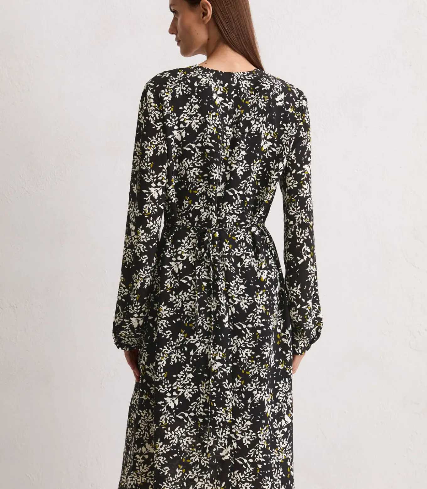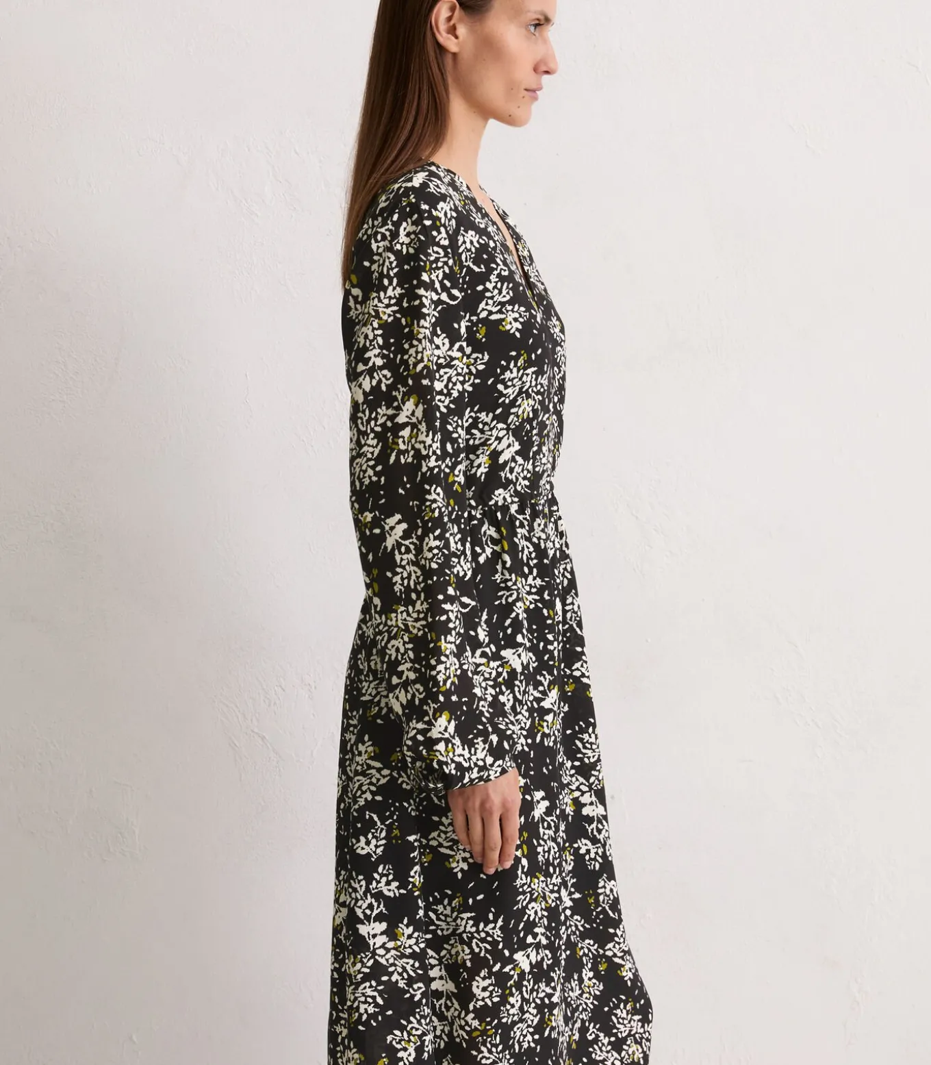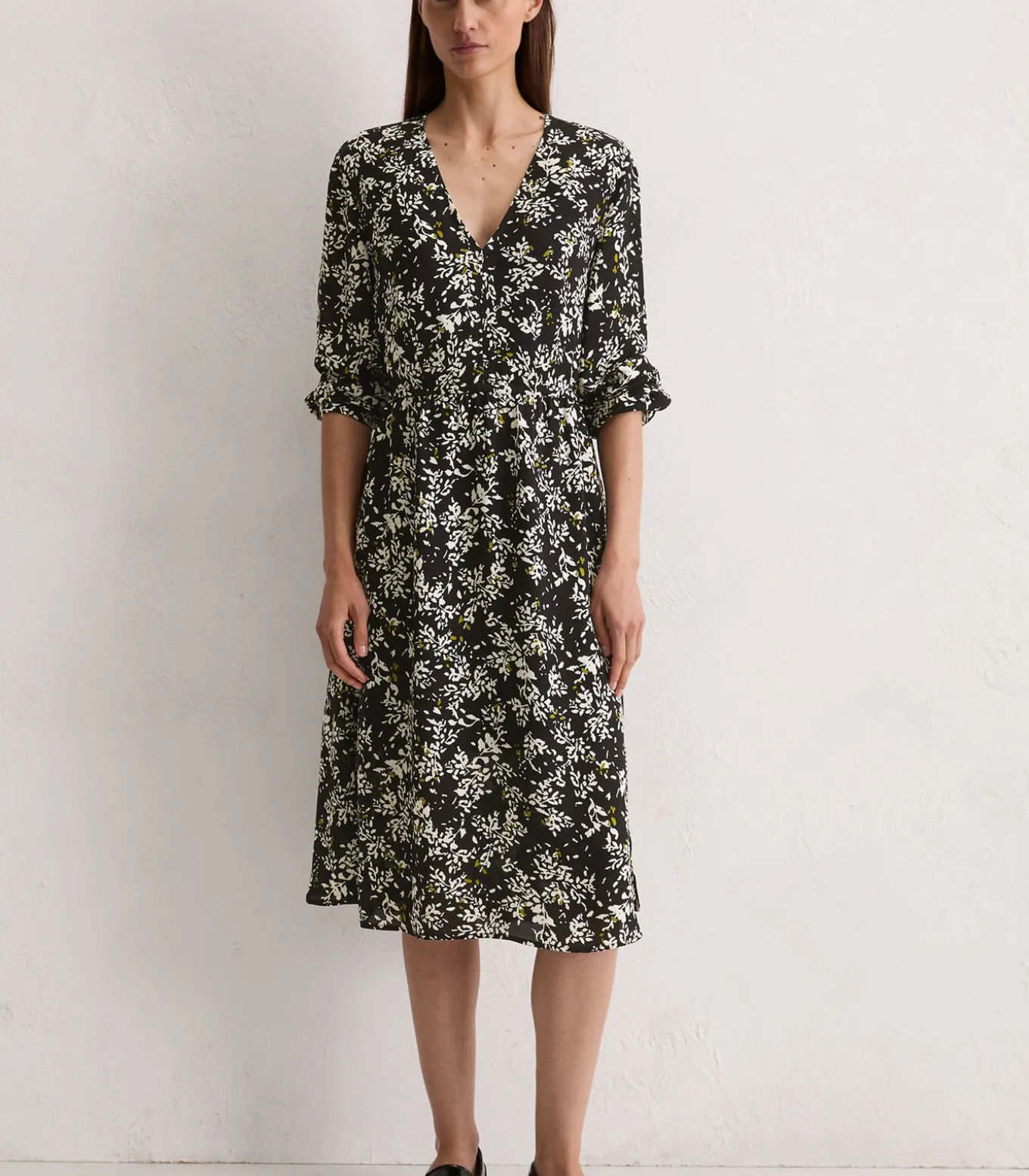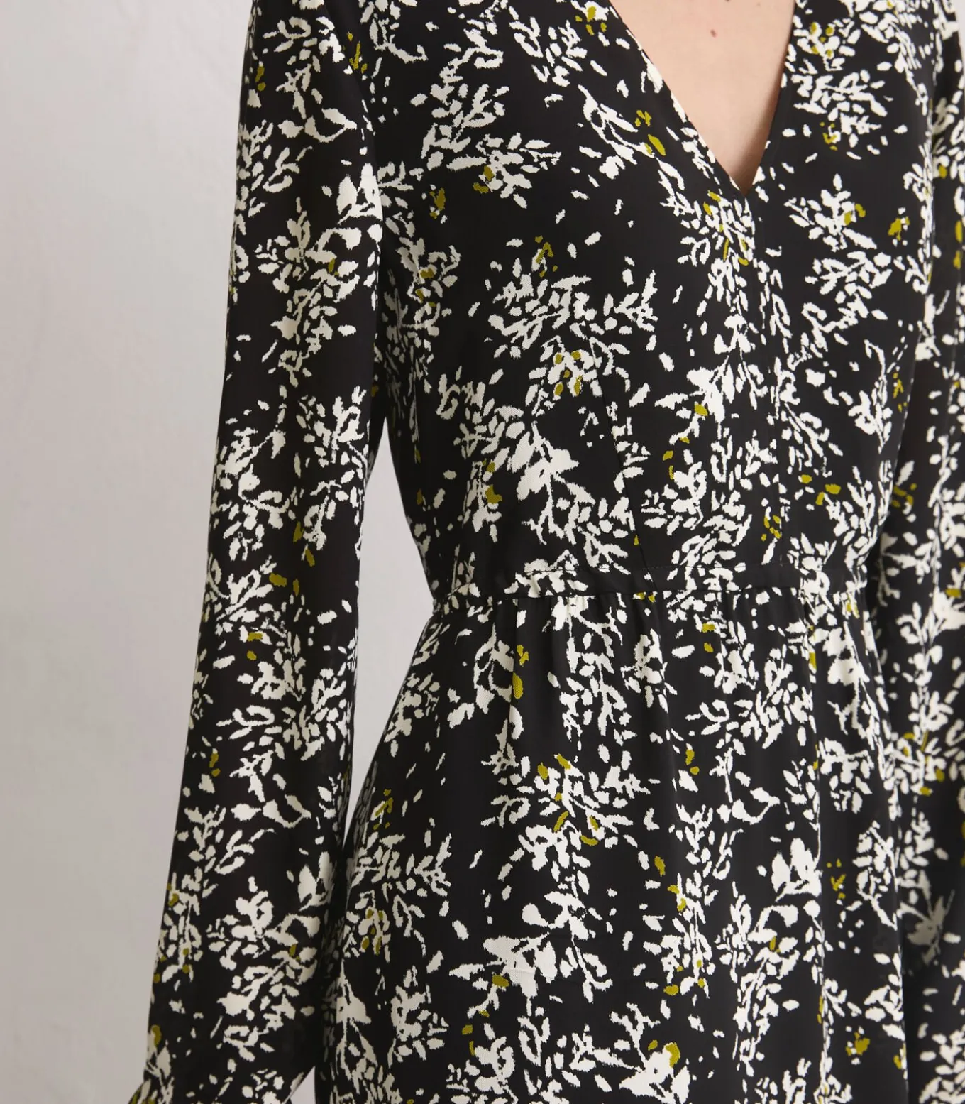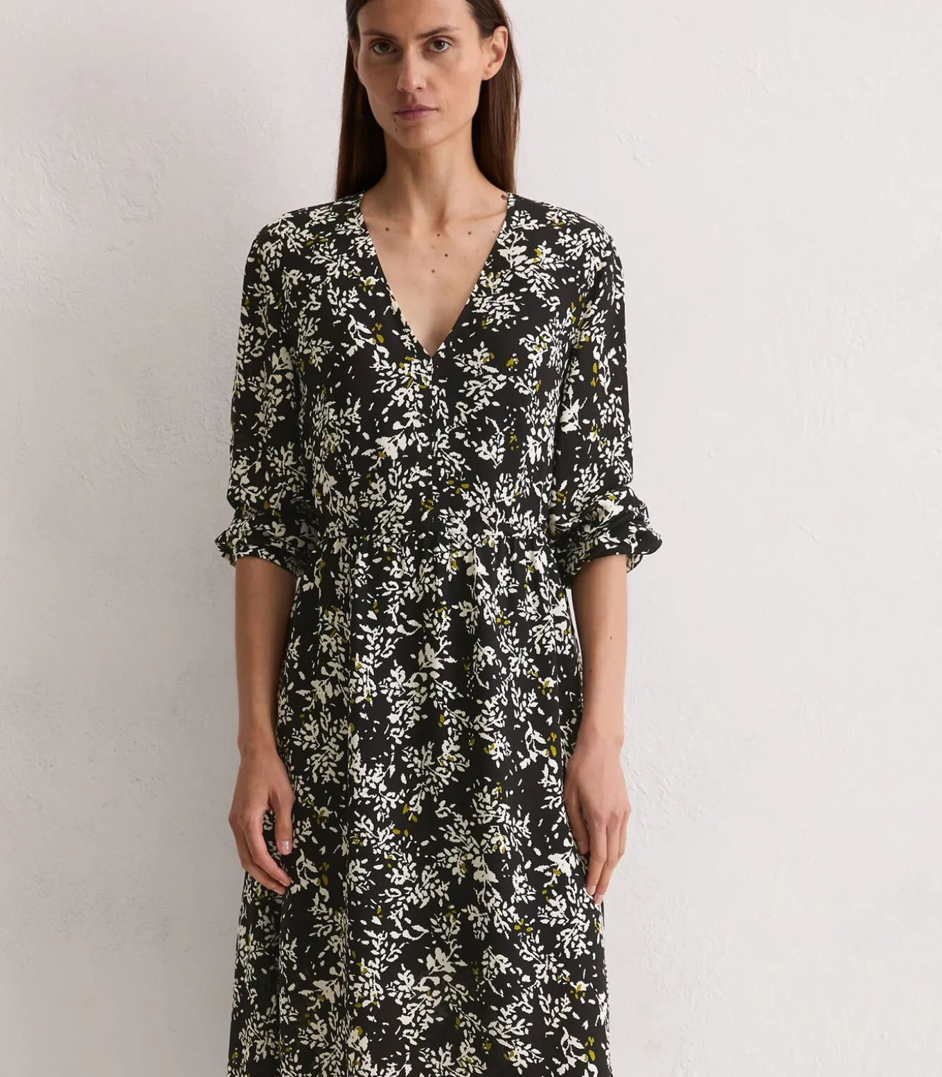 Korte jurk van fijne donkerblauwe mesh met borduurwerk