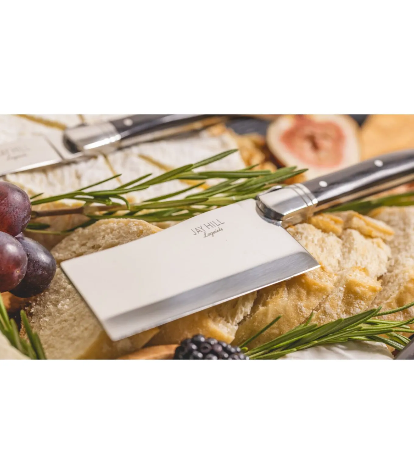 Een heerlijk kaasplankje met een glas rode wijn: krijg je er al zin in? Met deze Jay Hill kaasmessenset Laguiole zwart heb je een luxe set van drie verschillende kaasmessen. De twee kaasmessen en het hakbijltje zijn geschikt voor zowel harde– als zachte kazen. Deze stijlvolle messen beschikken over een elegant zwart handvat gemaakt van ebbenhout.Wil je kaasmessen cadeau geven aan familie of vrienden? Deze Jay Hill kaasmessen Laguiole zwart worden geleverd in een luxe houten kist met mooie geschenkverpakking.