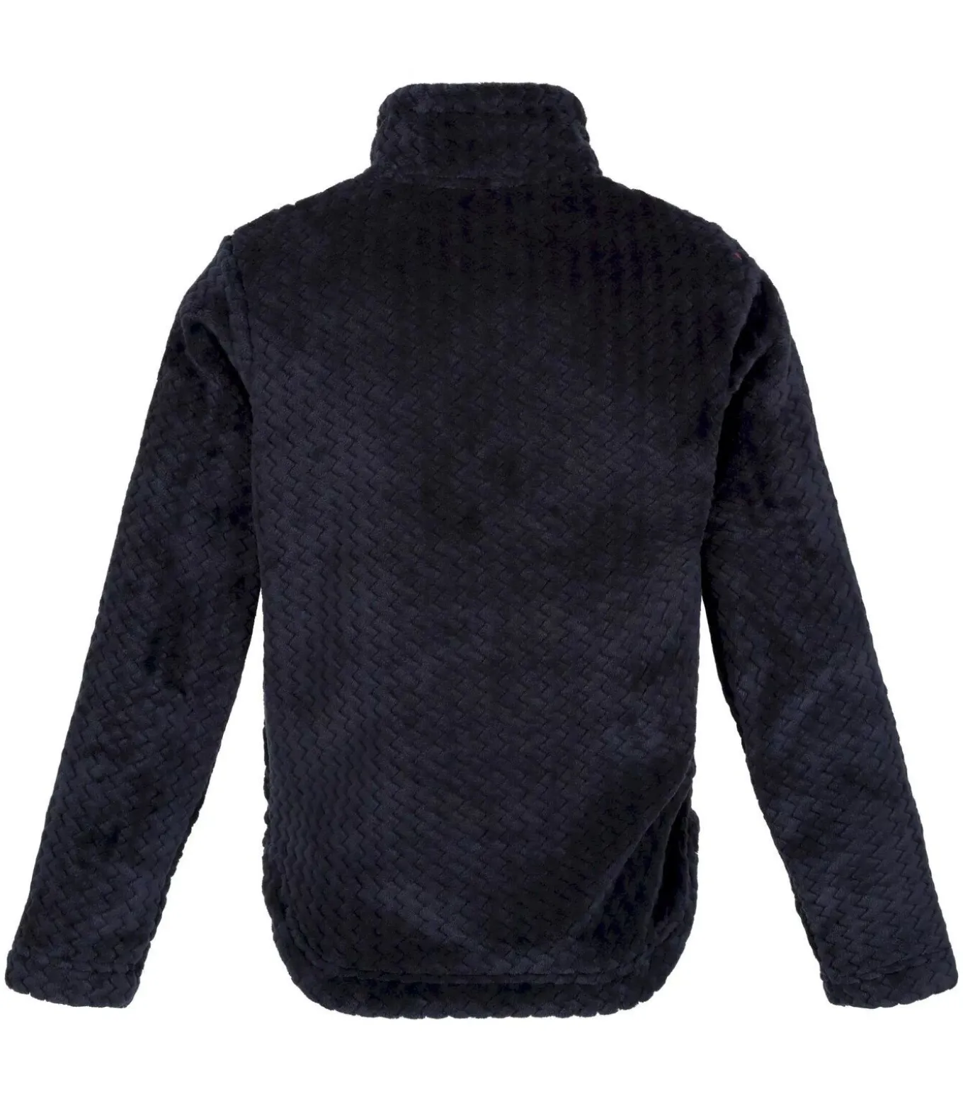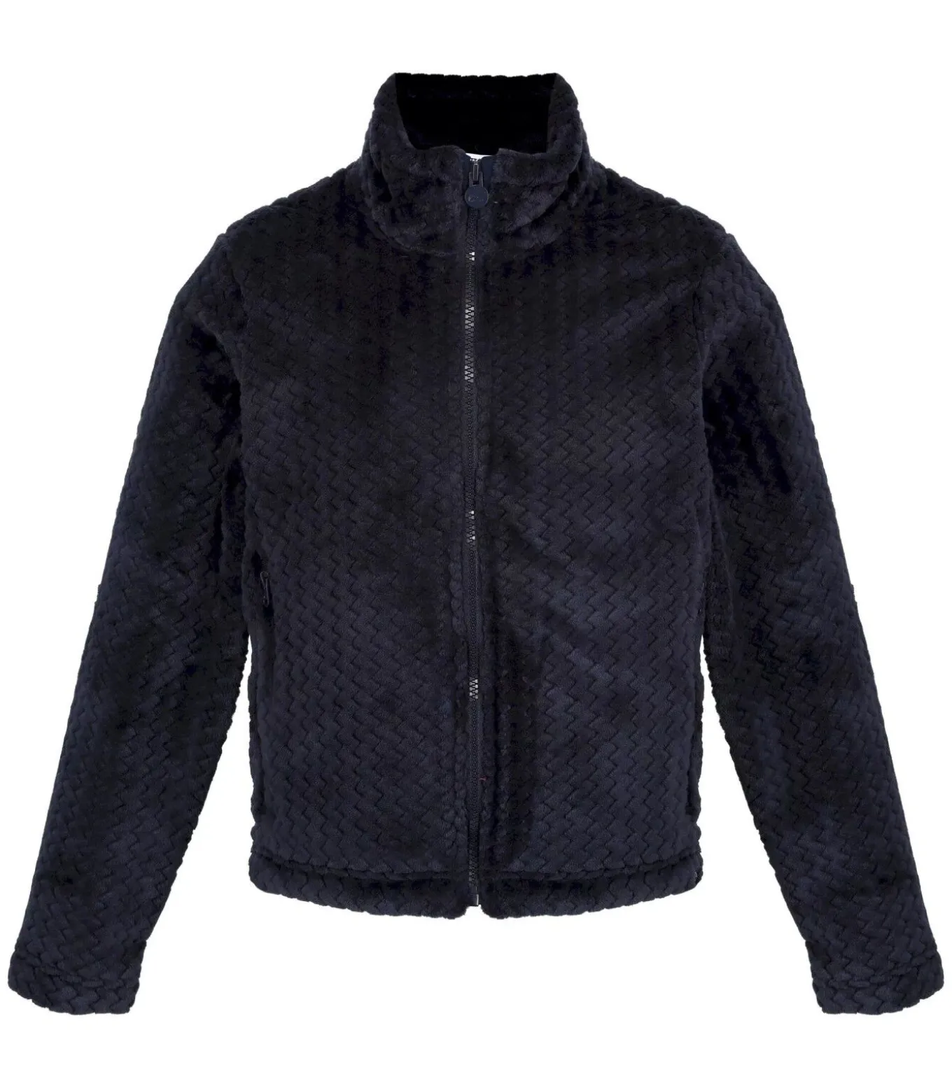 Deze productomschrijving beschrijft een kinder/kinder fleecejack van Regatta. Het jack heeft een golvend stofontwerp gemaakt van duurzaam en slijtvast polyester fleece materiaal. Het heeft lange mouwen met een opstaande kraag bij de hals. Voor het opbergen zijn er twee zijzakken met rits. De jas wordt gesloten met een rits over de hele lengte aan de voorkant. De zoom van de jas is gebogen en valt voor bedekking.