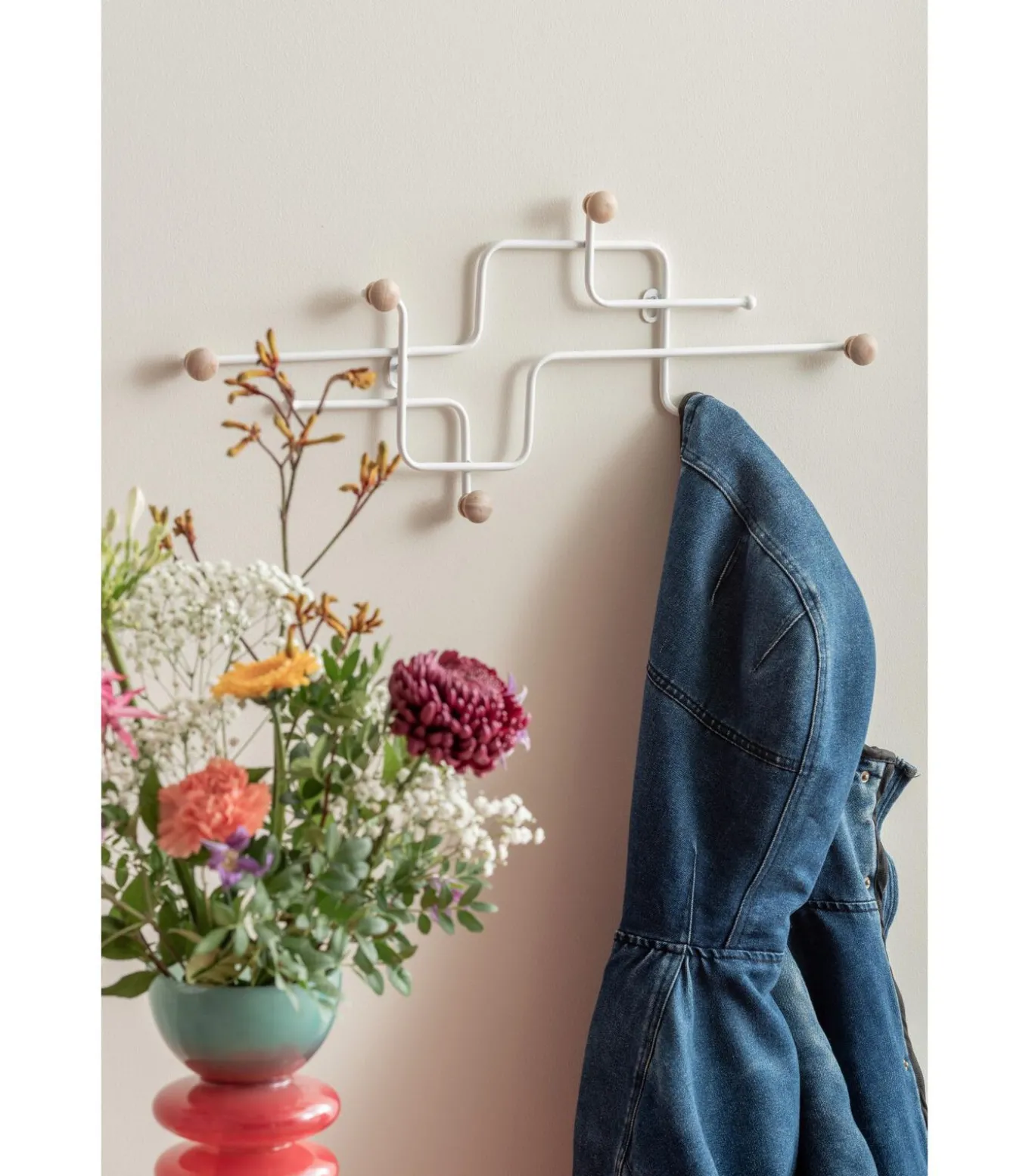 Kapstok Metro, Functioneel en trendy. De kapstokken van Present Time komen in verschillende vormen en kleuren, perfect passend binnen ons Funky Vibes thema. De houten knoppen in combinatie met een trendkleur zorgen voor een speelse en stijlvolle uitstraling. Liever iets rustigers? Kies dan voor een van de neutrale modellen die een subtiele charme toevoegen aan je ruimte.