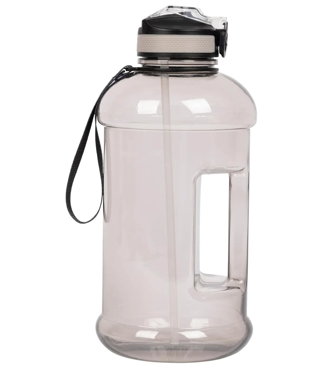 Trespass waterfles KEGLOS Transparant: een duurzame en stevige drinkbeker gemaakt van gezoomd gummeerd en textiel. Met een flip–top dak, lekvrij afsluiten, verzekert deze waterfles een goede lekvrije sluiting. Het ontwerp is gedrukt en de inhoud bedraagt één omhulsel met een capaciteit van 2.2 liter.