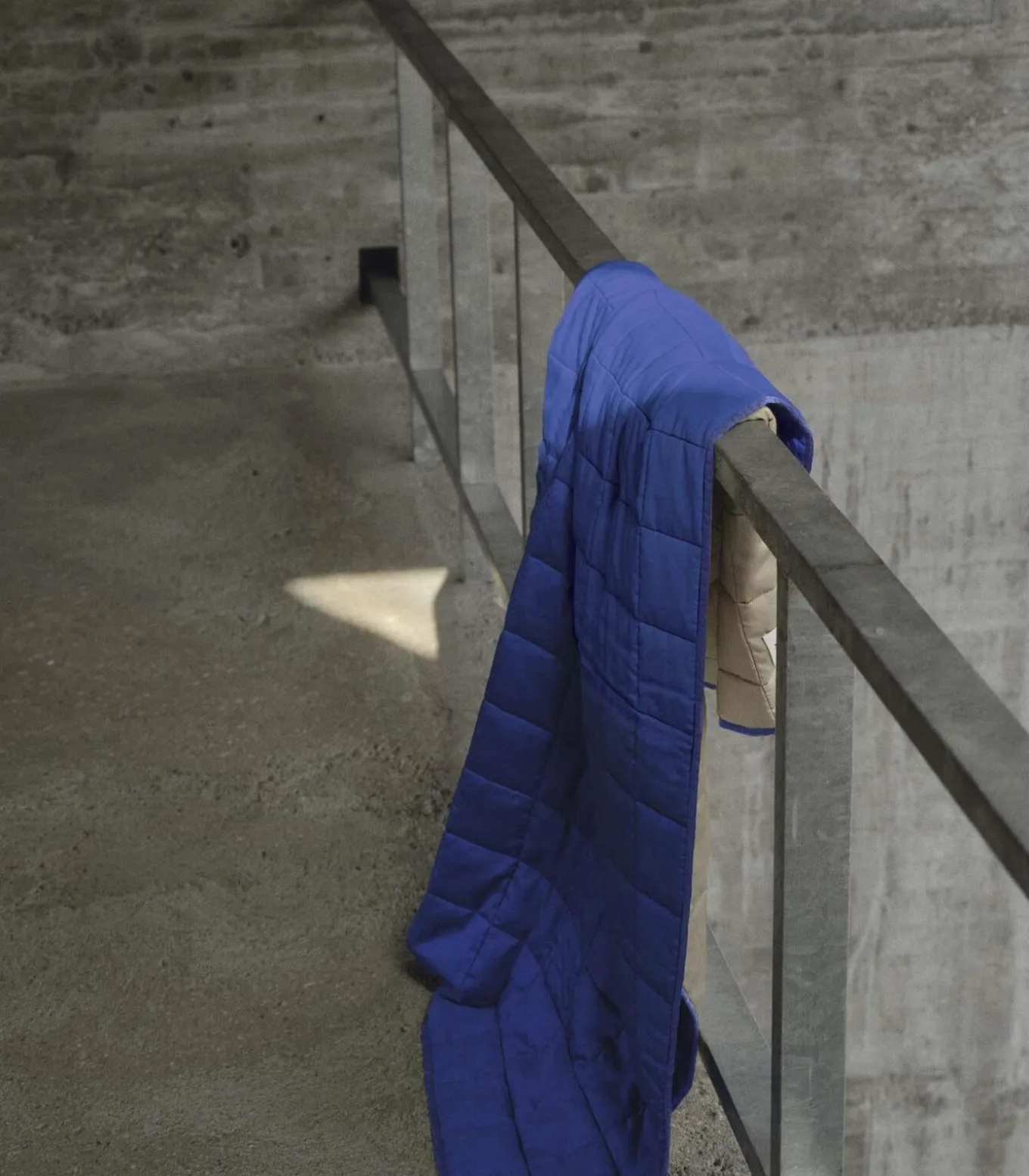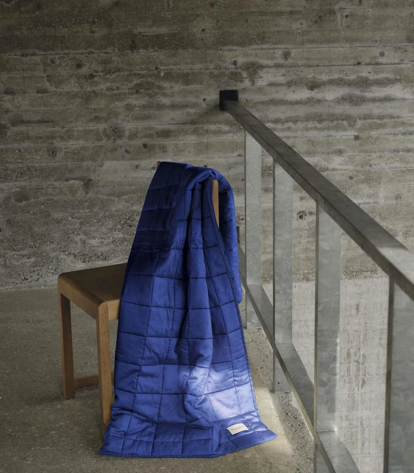 Naturally Nordic. De gewatteerde omkeerbare plaid in gewassen Tencel™ Lyocell is gevuld met gerecycled polyester.