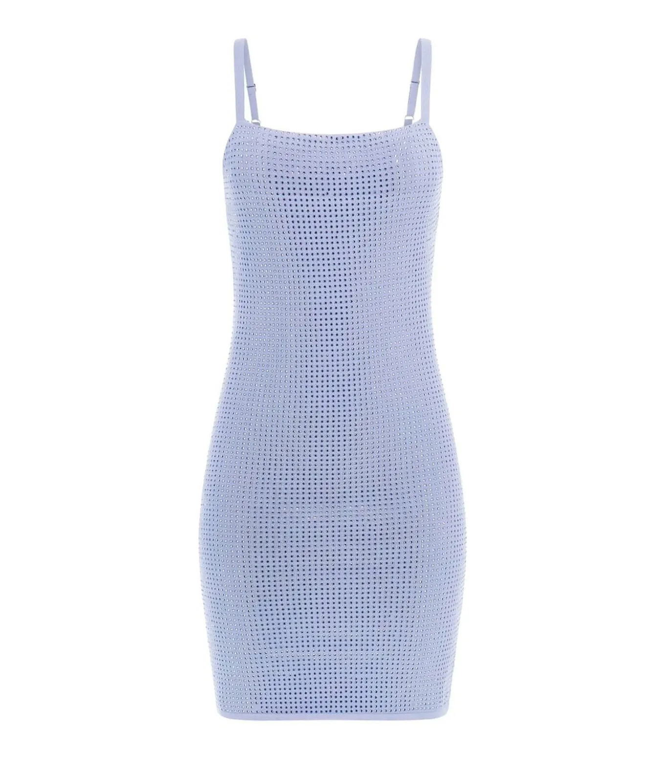 Kleur: Nimbus Blue Samenstelling: 58% viscose, 42% polyester Lengte: Kort Pasvorm: Getailleerd Details: Mini gebreide jurk met strass–applicaties over het hele lichaam, dunne verstelbare schouderbandjes, silhouet dat het figuur accentueert en een sprankelende touch aan de look geeft Gebruik: Perfect voor speciale avonden of glamoureuze evenementen waarbij je niet onopgemerkt wilt blijven
