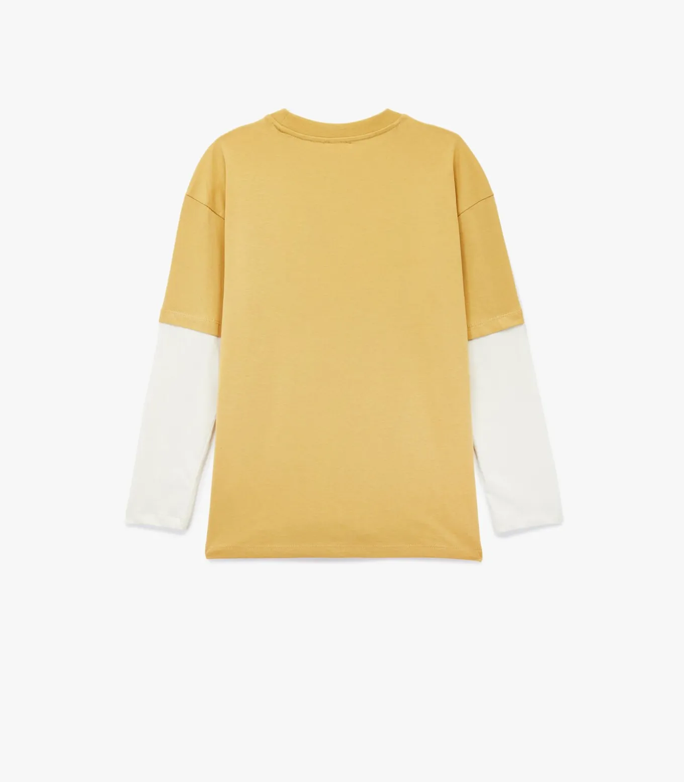 Dit comfortabele en moderne T–shirt is perfect voor de dagelijkse kleding van kinderen. Het shirt heeft lange mouwen en een ronde hals, wat een sportieve uitstraling geeft. Het printdetail voegt een energieke look toe. Gemaakt van zacht katoen voor comfort, geschikt voor elk seizoen.
