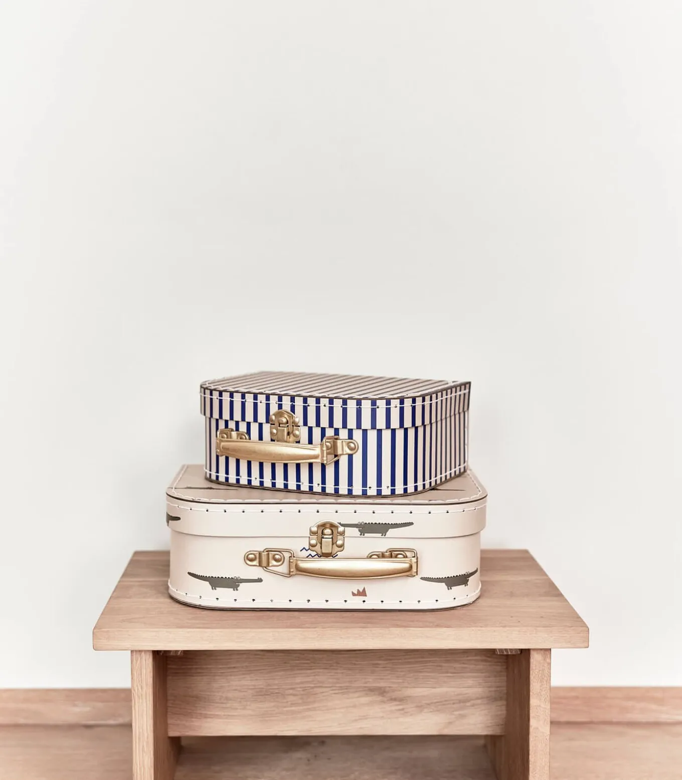 De klassieke koffer mag in geen enkele kinderkamer ontbreken. Het kind zal dol zijn op spelen en het organiseren van hun favoriete speelgoed in de schattige koffertjes met een lieve print. Wordt geleverd in een set van twee, in twee verschillende maten.