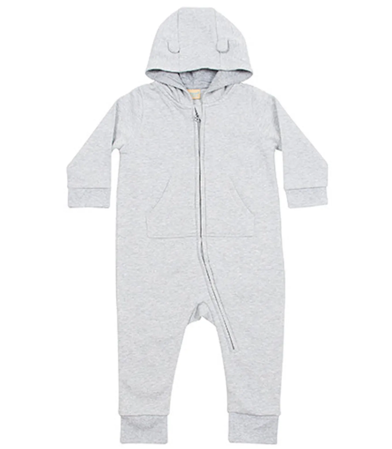 De Larkwood Toddler Jumpsuit is een comfortabel en stijlvol kledingstuk voor jonge kinderen. De stof is gemaakt van een zachte en knusse mix van 71% katoen, 23% polyester en 6% viscose en heeft een geborstelde fleece achterkant voor extra warmte en comfort. De jumpsuit heeft een effen ontwerp, twee voorzakken voor het gemak en een hals met capuchon voor extra warmte en bescherming. De lange mouwen bieden voldoende bedekking, terwijl de capuchon is versierd met charmante 3D–oren, opgenaaid en gevoerd met single jersey voor een speelse touch. De jumpsuit heeft platte, vergrendelde naden voor een soepele en comfortabele pasvorm en is ontworpen zonder labels om irritatie te voorkomen. De binnenkant is opzettelijk opgeruwd voor extra warmte en gezelligheid. De jumpsuit sluit goed met een YKK rits en is verkrijgbaar in drie maten: 6–12 maanden (19 inch), 12–18 maanden (20 inch) en 18–24 maanden (21 inch). Met een stevig gewicht van 280gsm biedt deze jumpsuit duurzaamheid en warmte, waardoor het een ideale keuze is voor actieve peuters tijdens koeler weer.