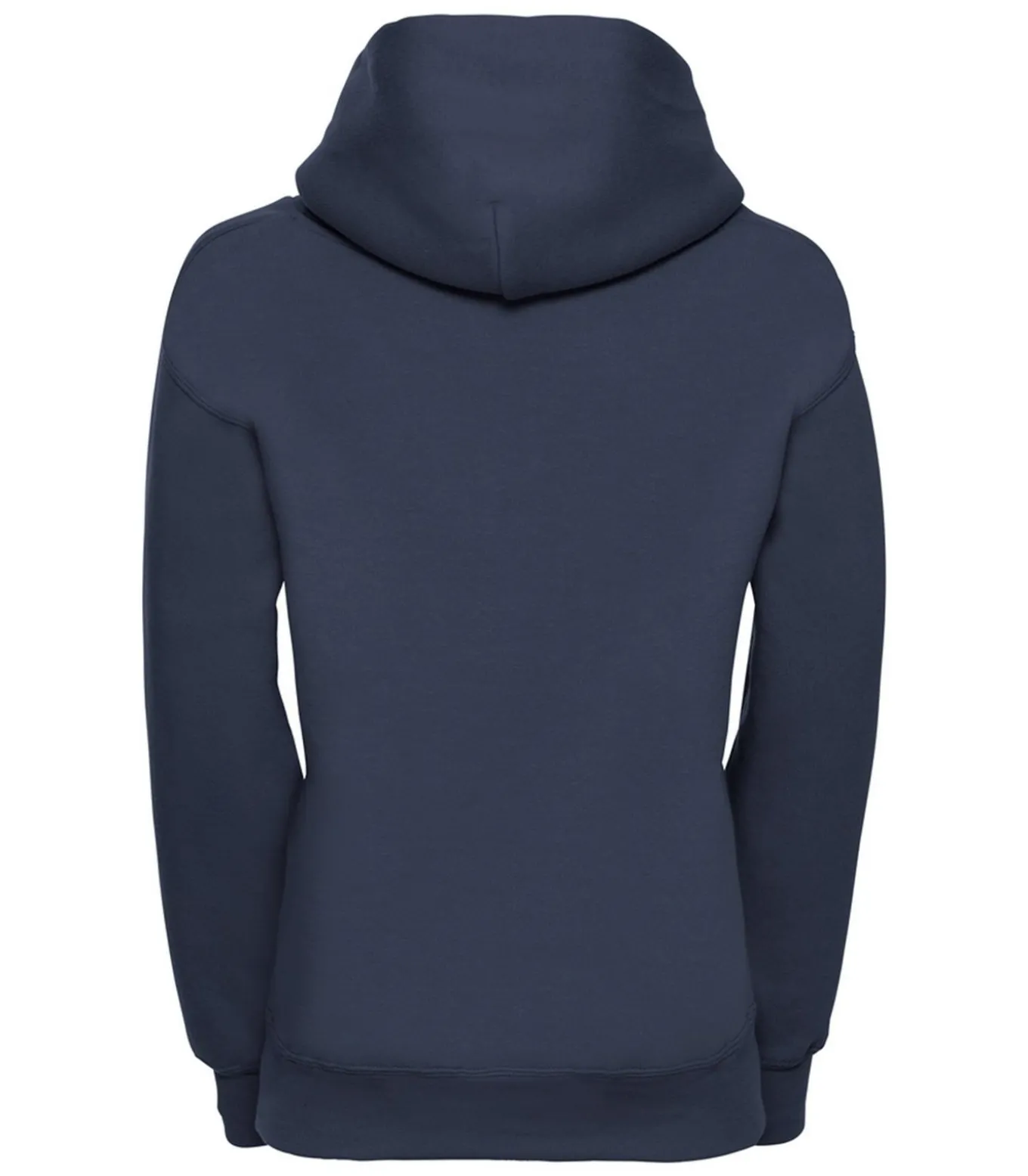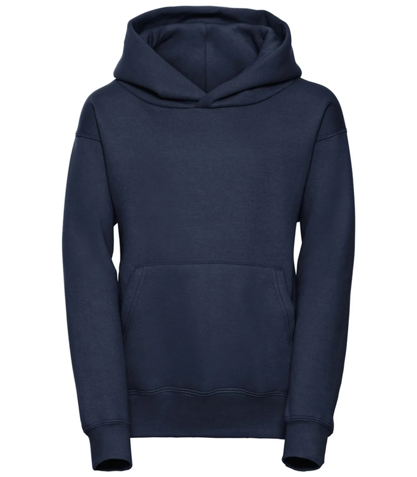 De Russell kindercapuchon is een veelzijdig kledingstuk dat is ontworpen voor comfort en duurzaamheid. Deze hoodie is gemaakt van een mengsel van 50% gekamd ringgesponnen katoen en 50% polyester en heeft een buisvormige stofconstructie en een effen dessin. Met een gewicht van 295 gsm biedt hij warmte en isolatie. De zoom van de hoodie is doorgestikt en geribd, voor een stevige en comfortabele pasvorm. De capuchon zelf heeft een dubbele laag voor extra warmte en bescherming. De manchetten zijn ook doorgestikt, geribd en breed, voor een goede pasvorm rond de polsen. De armsgaten zijn doorgestikt en de schouders zijn ontworpen met een drop shoulder voor meer bewegingsvrijheid. De halslijn heeft een visgraatband en een capuchon voor extra stijl en warmte. De mouwen zijn lang en ingezet voor een comfortabele en praktische pasvorm. De hoodie heeft een normale pasvorm en een enkele kangoeroezak met stiksels voor duurzaamheid. Het is ontworpen als een pull–over kledingstuk, waardoor het gemakkelijk aan en uit te trekken is. Deze hoodie voldoet aan verschillende duurzaamheidsnormen, waaronder Amfori, Better Cotton Initiative, BSCI, Fair Labor Association en Oeko–Tex Standard 100 Certified, wat ethische en milieuverantwoorde productiepraktijken garandeert. De hoodie is verkrijgbaar in maten van 3–4 jaar (25 inch) tot 11–12 jaar (34 inch), voor kinderen van verschillende leeftijden en maten.