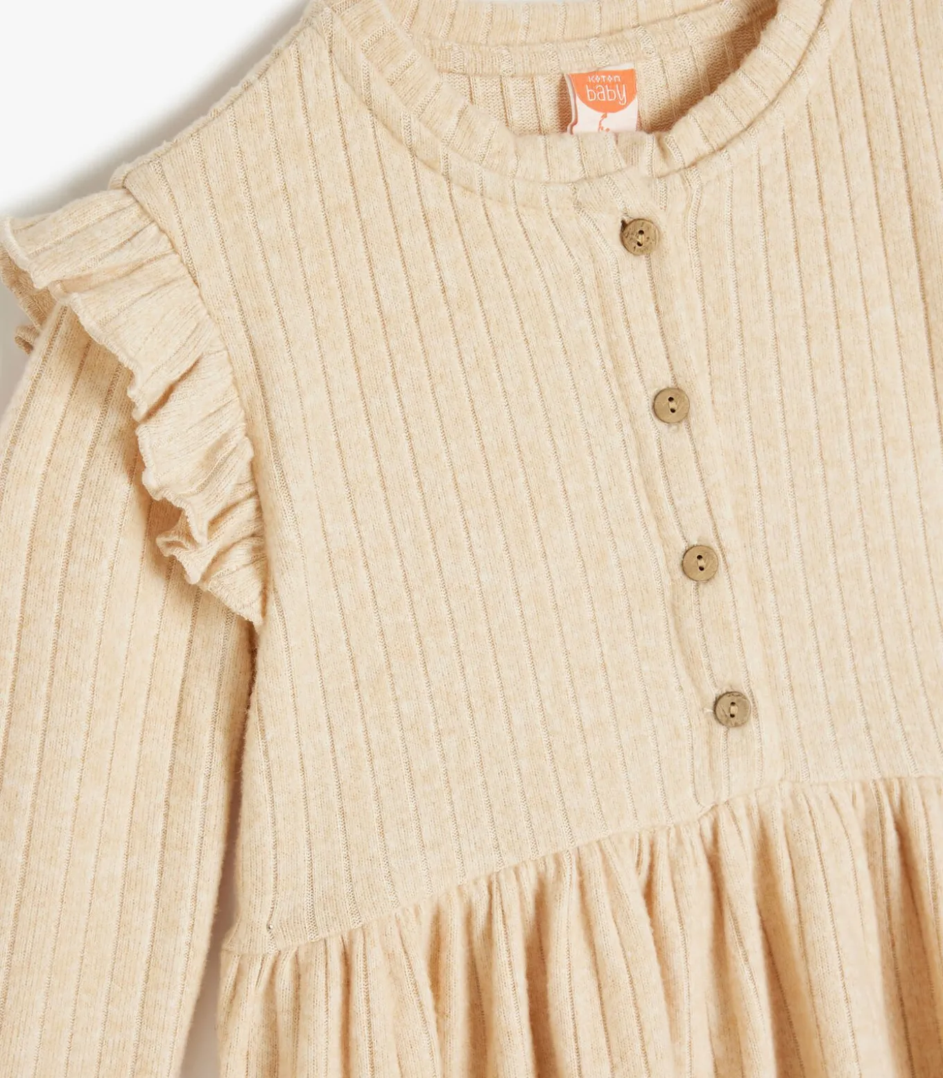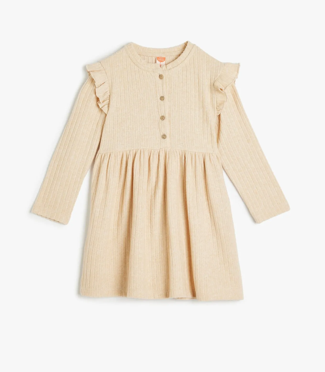 Ruches Gedetailleerd Normaal Vorm A zonder zak Knielengte Lange mouw Ronde kraag Jurk