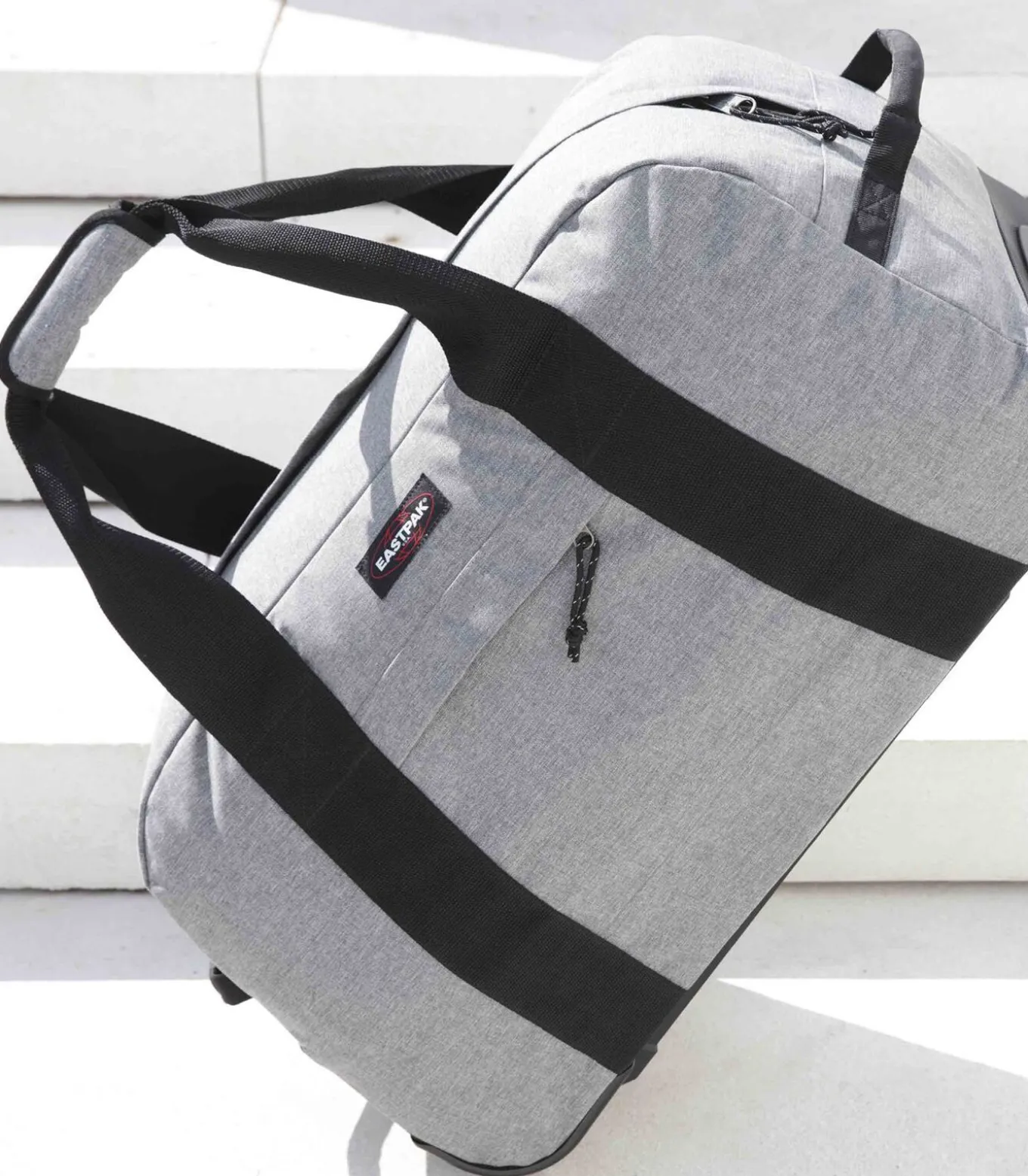 De Eastpak Container + reistas is gemakkelijk te verplaatsen dankzij de trolley en 2 stevige wielen. Om vroegtijdige slijtage van de bodem te voorkomen, heeft hij lange, stevige, slijtvaste verstevigingen. Om hem met de hand te verplaatsen, heeft hij ook 2 handgrepen met gevoerde bevestigingsriemen en een handgreep aan de zijkant. Als het regent, is de inhoud beschermd tegen vocht dankzij een waterdichte behandeling aan de binnenkant van de voering.