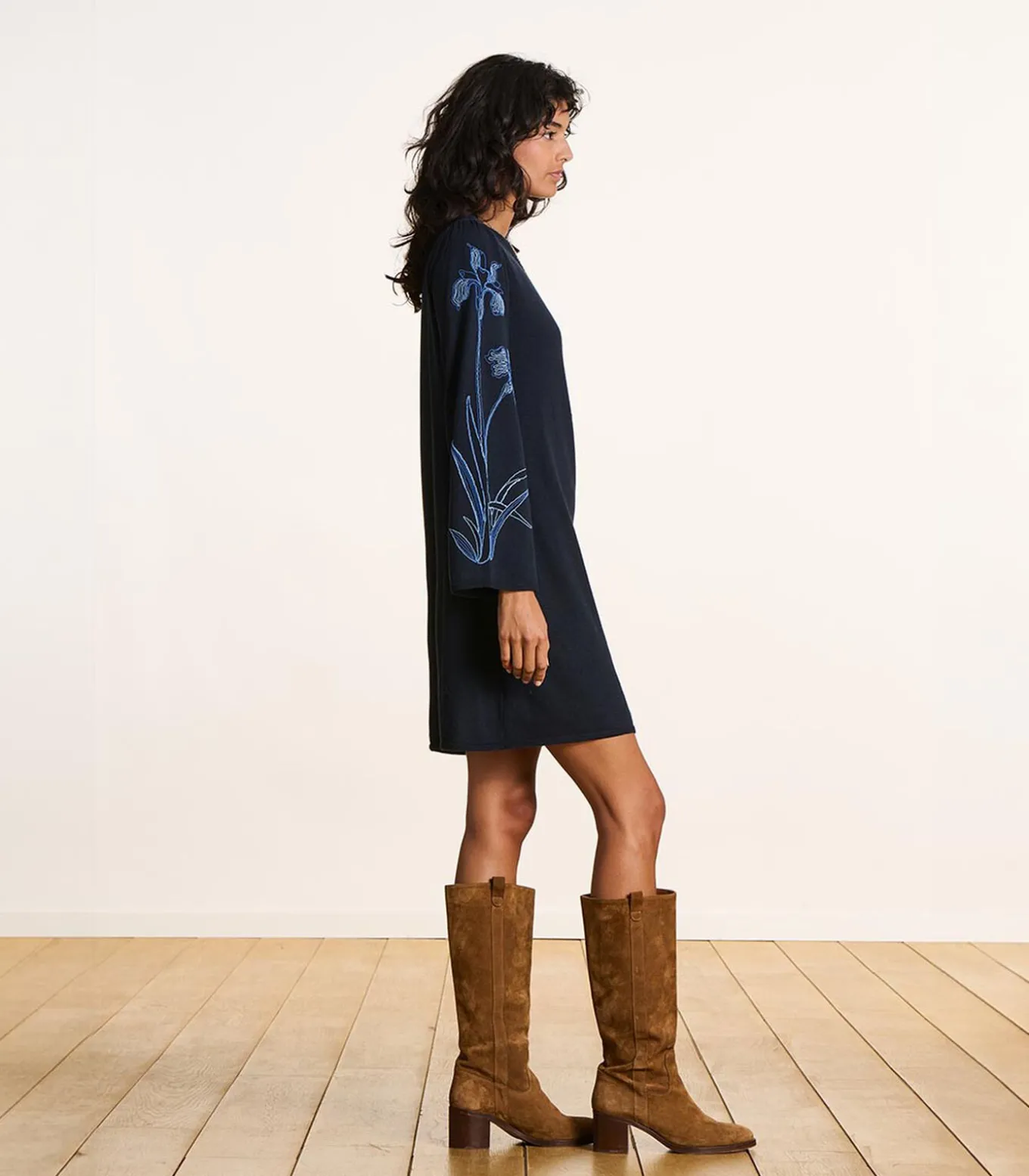– Details met Cornely bloem borduursels op de mouwen