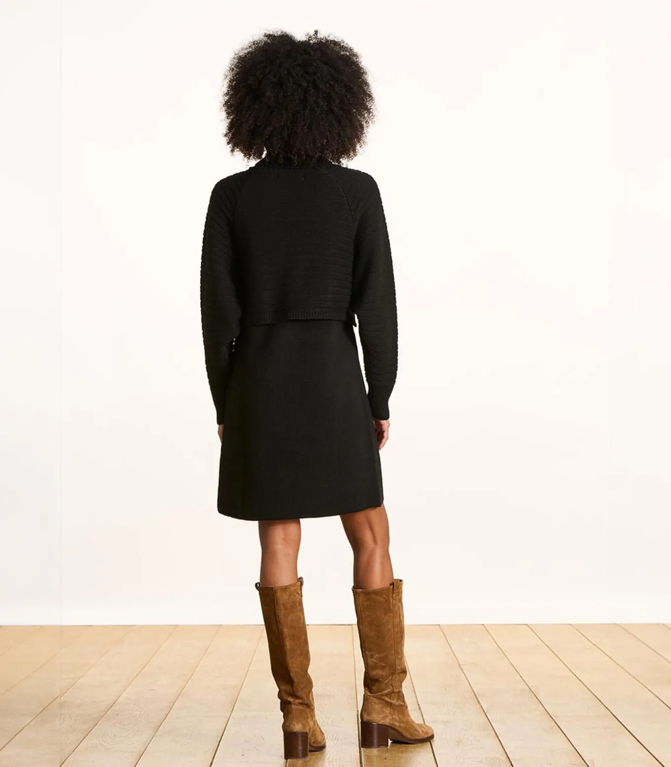 Korte jurk van fijne donkerblauwe mesh met borduurwerk