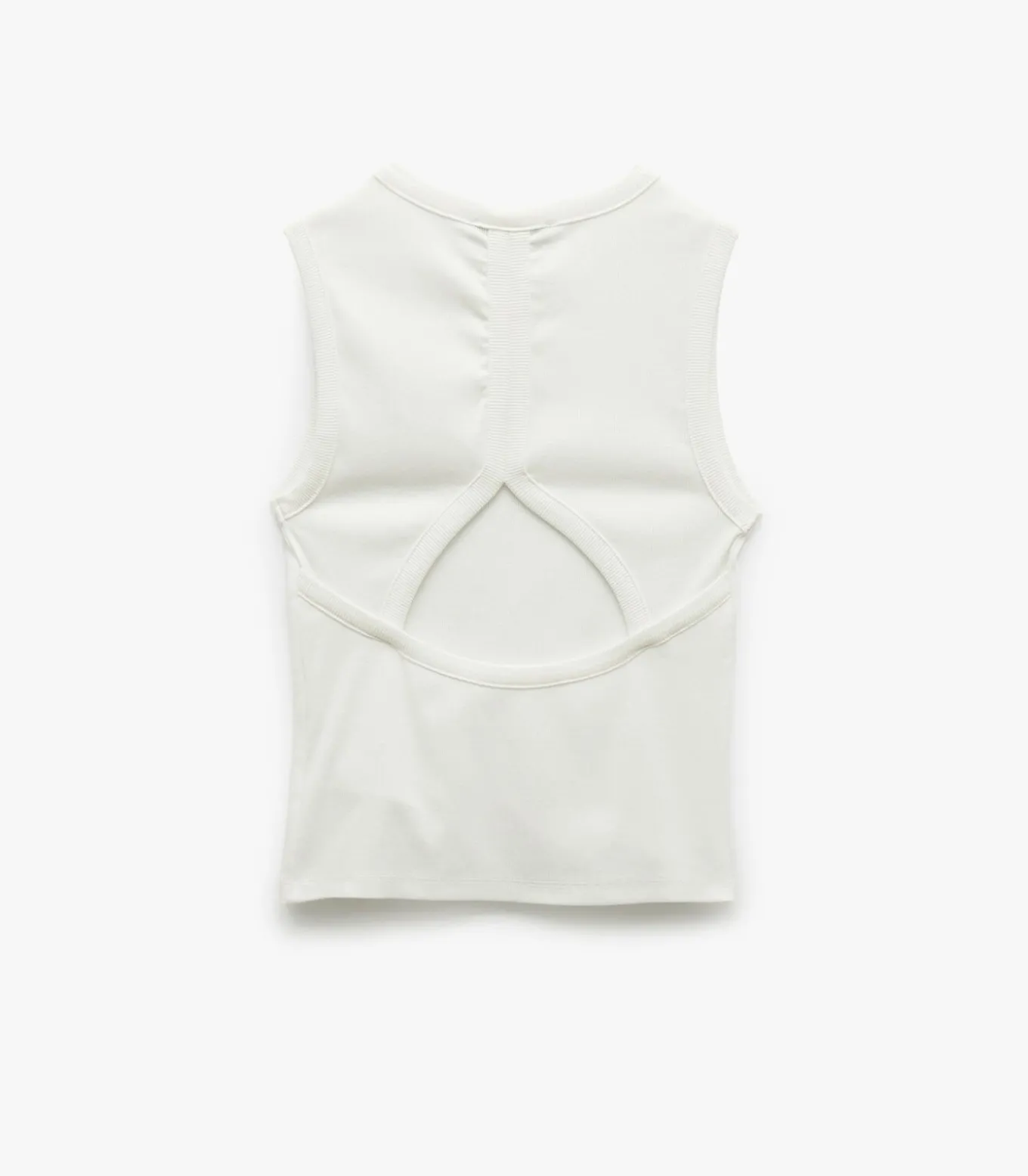 Cotton crew neck back cut–out detail tank top.
