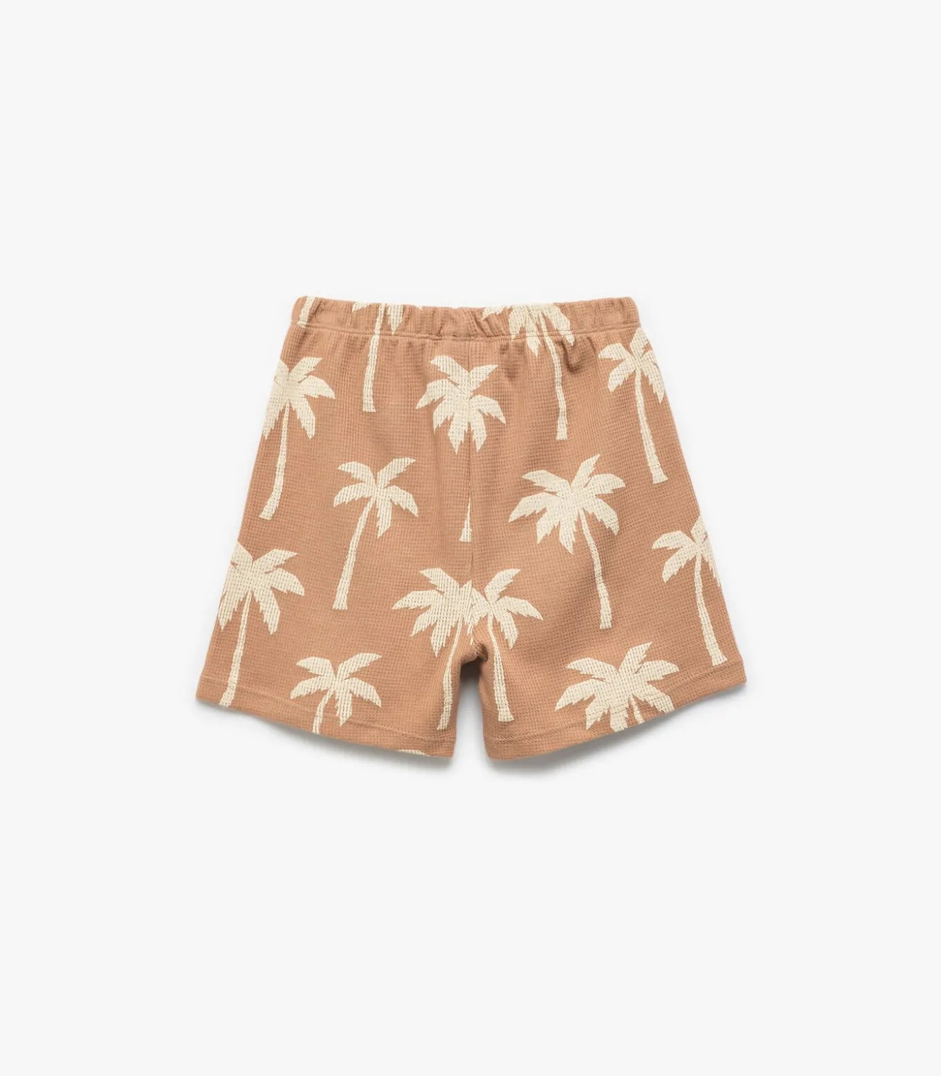 Elastic waistband palm printed cotton shorts.