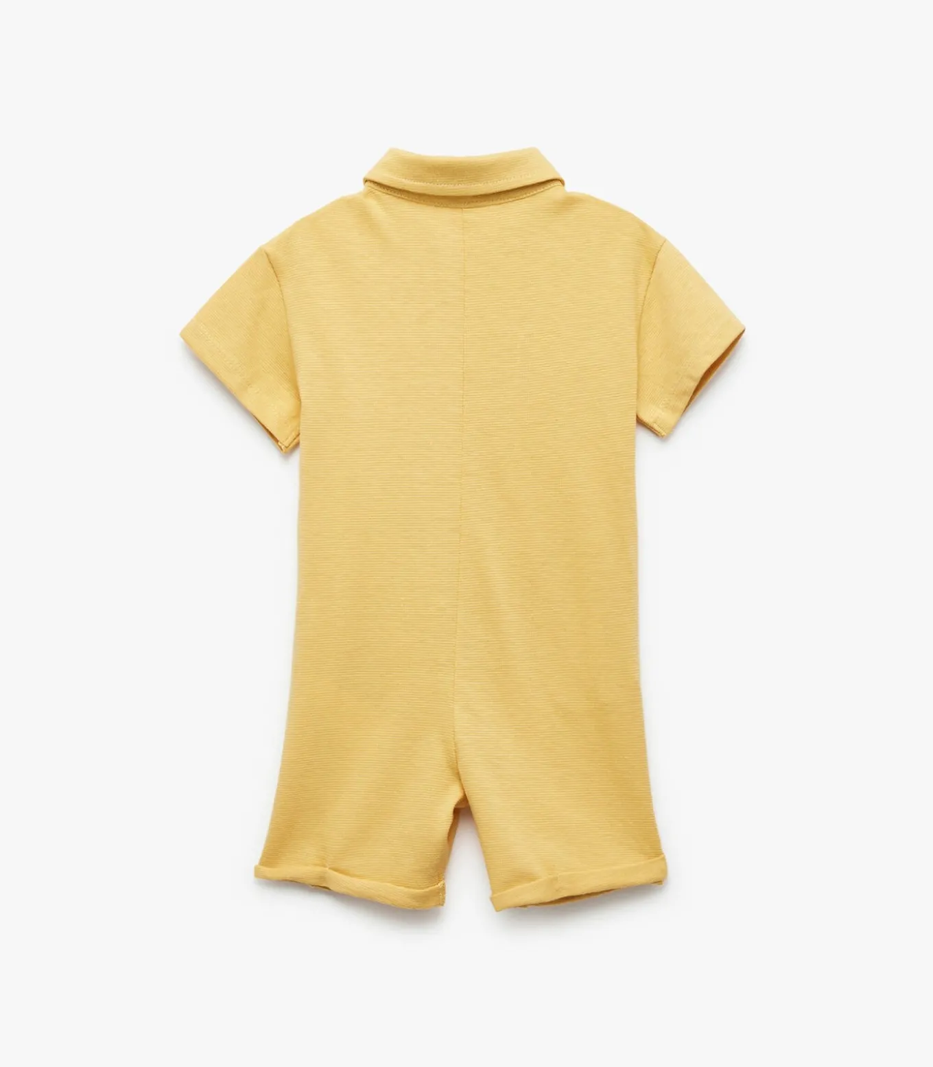 Button detail short sleeve polo neck cotton shorts overalls. With this outfit, your baby is safe. Our products are tested against chemicals and designed mechanically in compliance with all safety principles. They do not contain dyestuff and heavy metals which may be damaging for health or any small and sharp pieces, straps or laces that may be ingested.