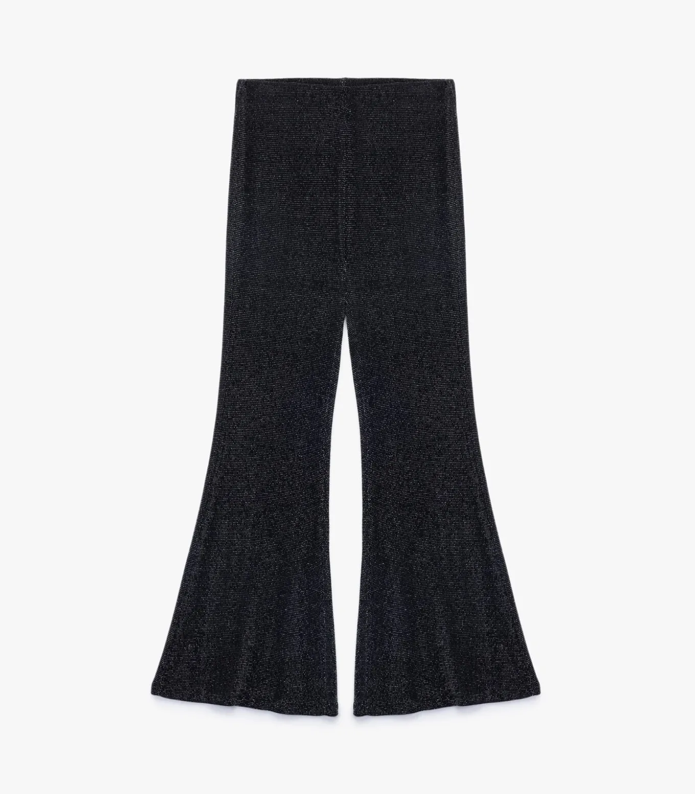 Koton Slim fit high rise glitter detail wide leg flared pants.