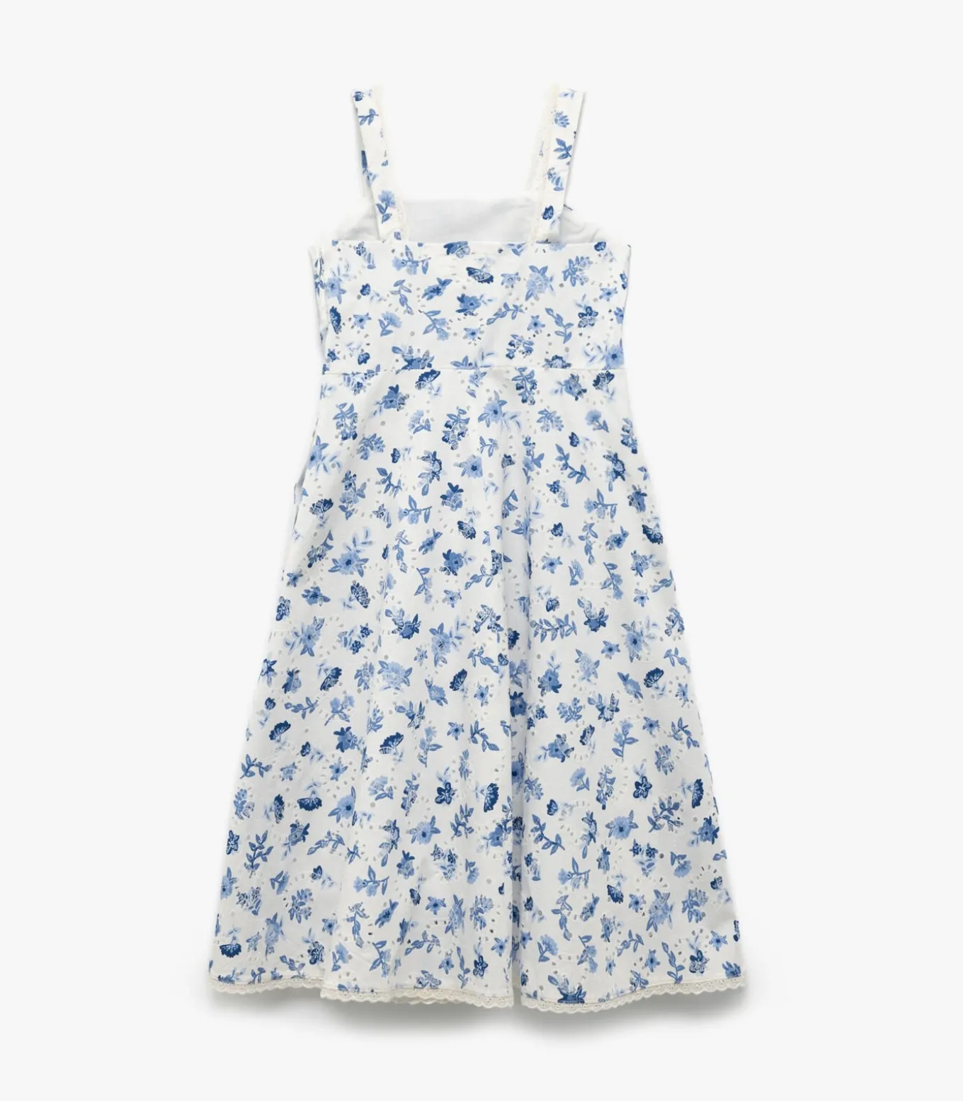 Cotton square neck strappy floral dress.