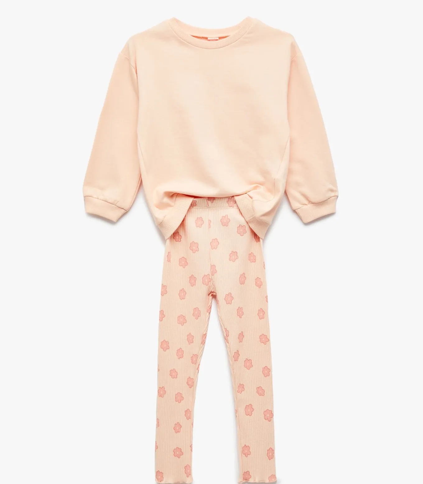 Koton Cotton crew neck long sleeve sweatshirt and ribbed flower printed leggings set. With this outfit, your baby is safe. Our products are tested against chemicals and designed mechanically in compliance with all safety principles. They do not contain dyestuff and heavy metals which may be damaging for health or any small and sharp pieces, straps or laces that may be ingested. *Fabric information for the products in our multi–packs may vary.