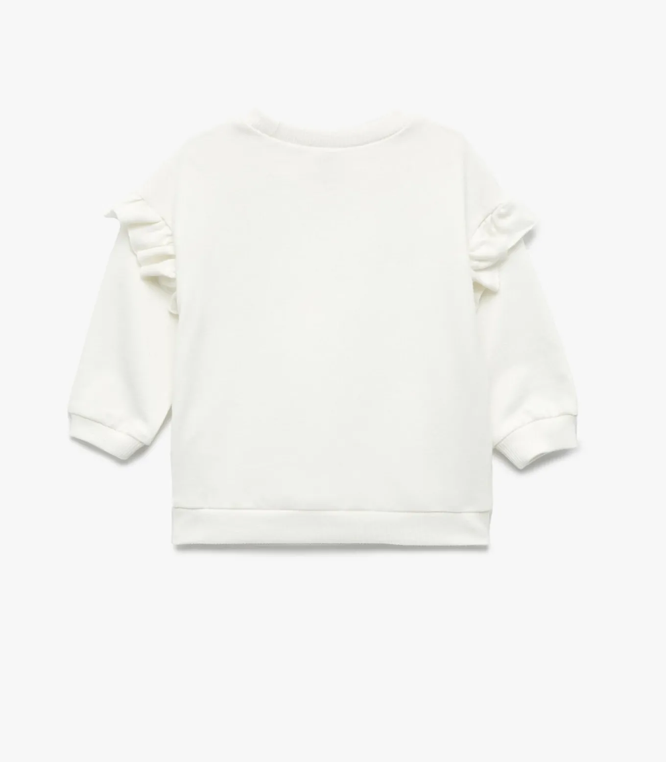 Koton Soft interior long sleeve crew neck butterfly detail frilled sweatshirt.