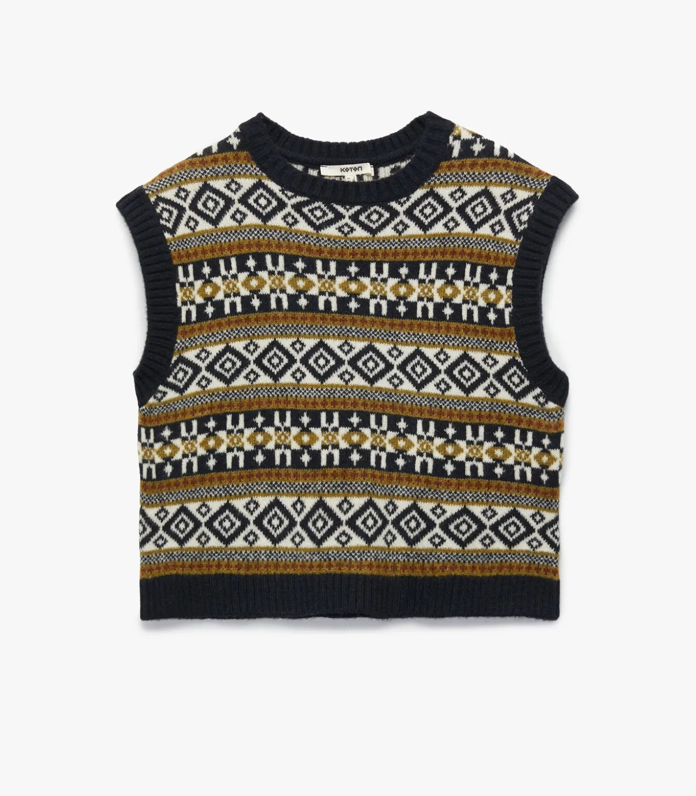 Koton Ethnic patterned sleeveless crew neck knit oversized vest.