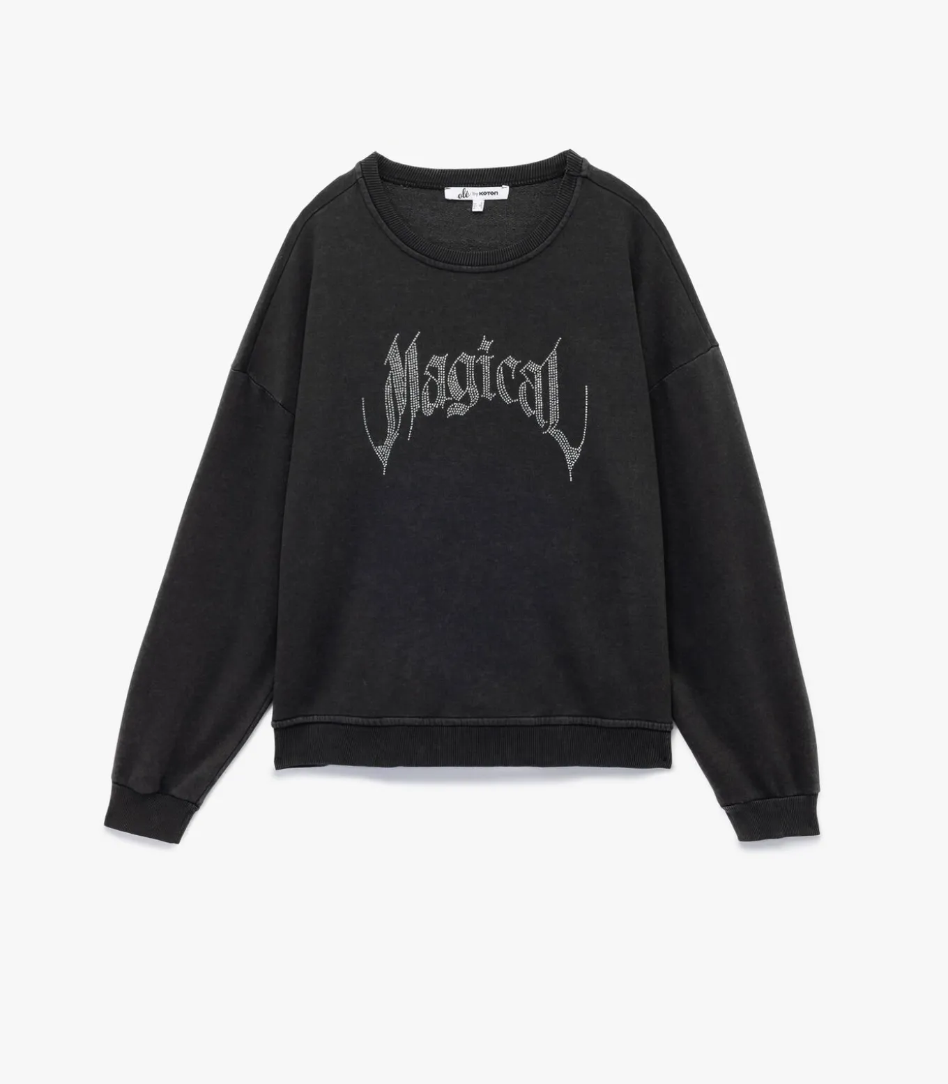 Koton Soft interior long sleeve crew neck stone printed oversized sweatshirt.