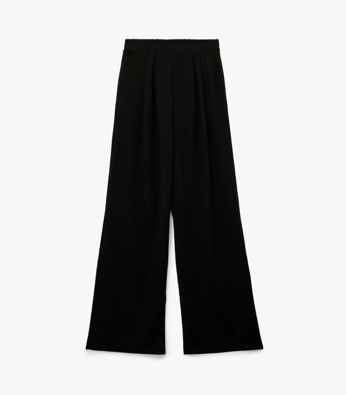 Koton Pleated wide leg palazzo trousers with pockets in crinkle fabric.