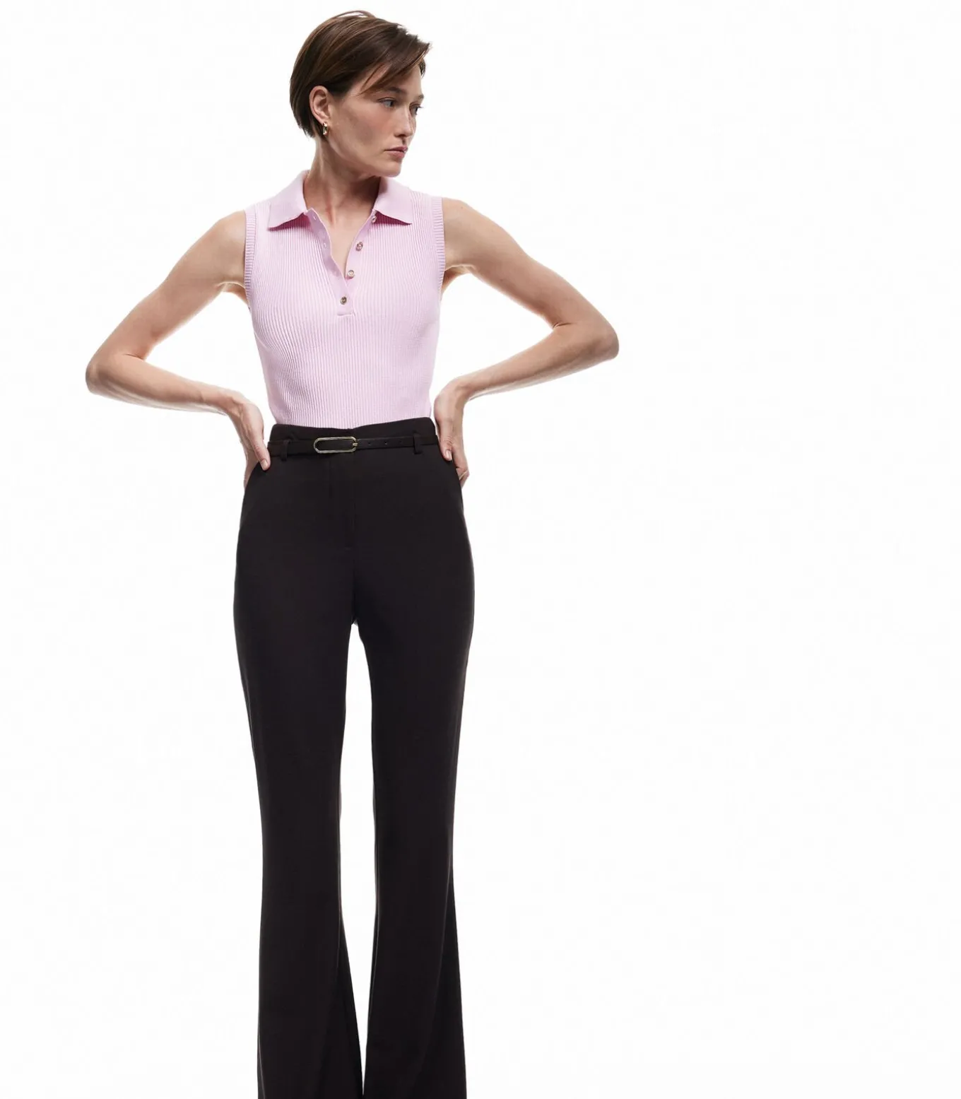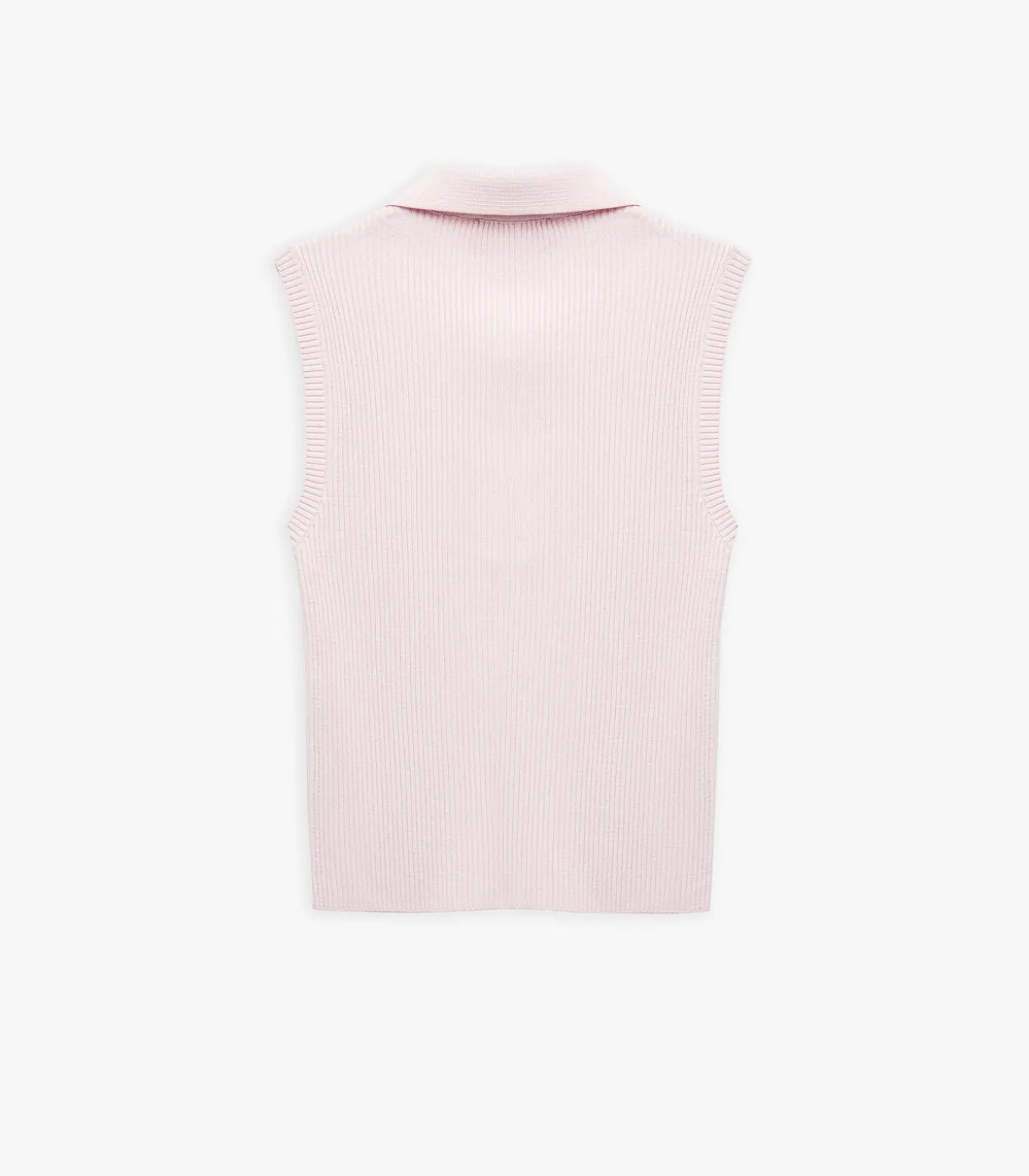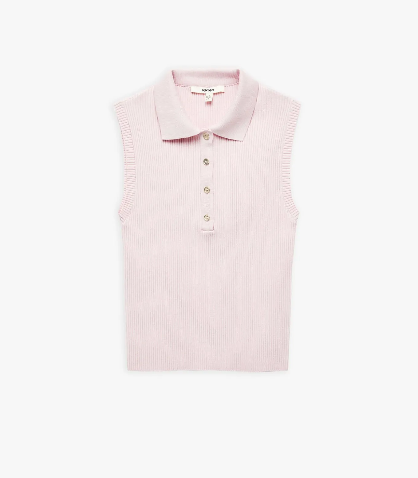 Color block button detail sleeveless polo neck knit top.