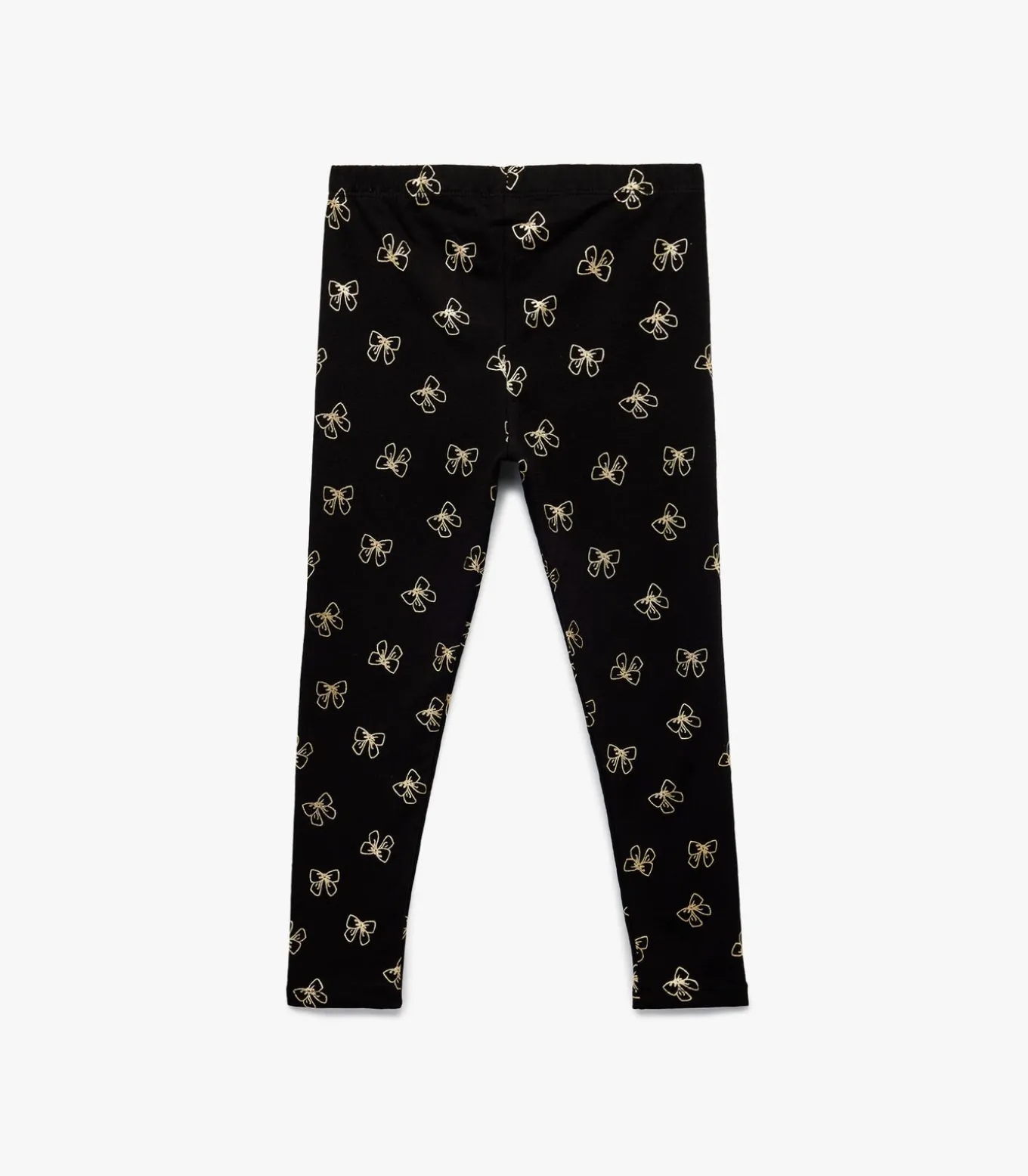 Koton Soft interior tight fit ribbon printed cotton leggings.