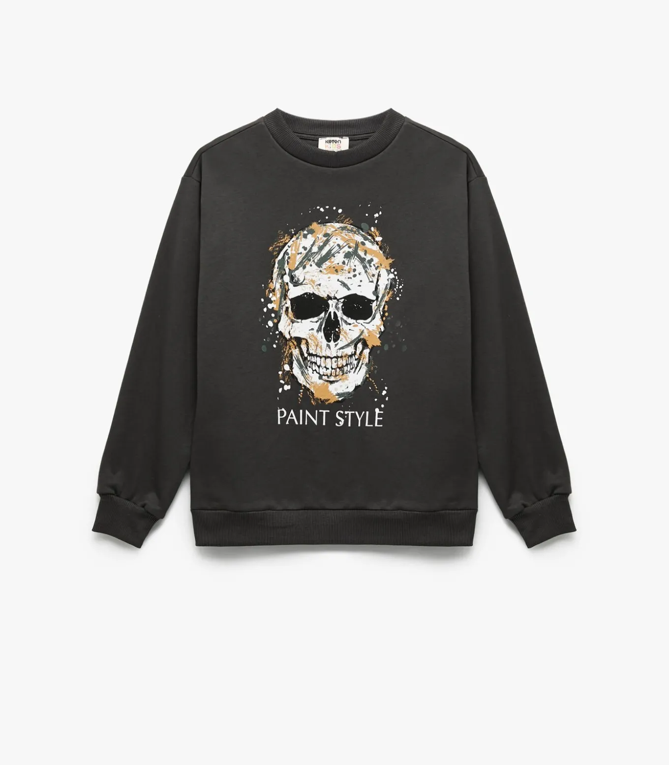 Koton Cotton long sleeve crew neck printed sweatshirt.