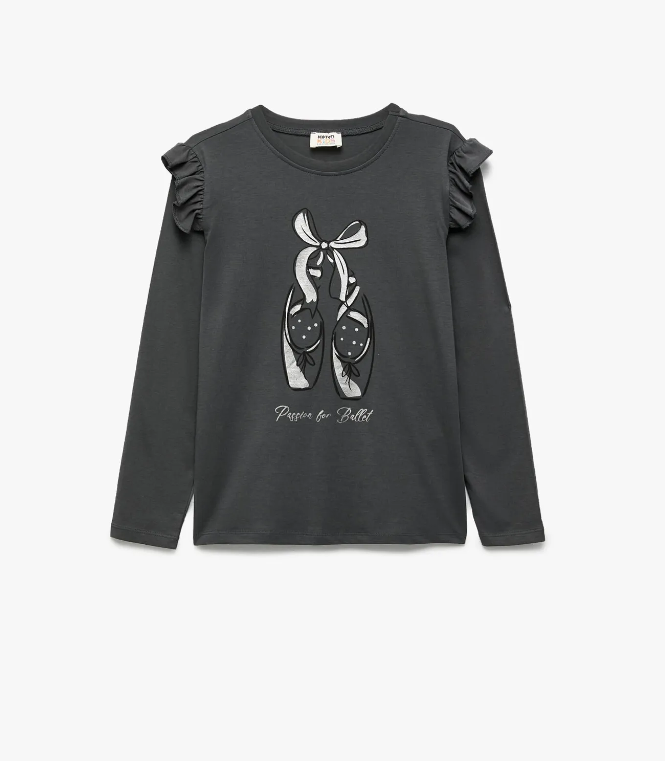 Koton Cotton long sleeve crew neck printed t–shirt.