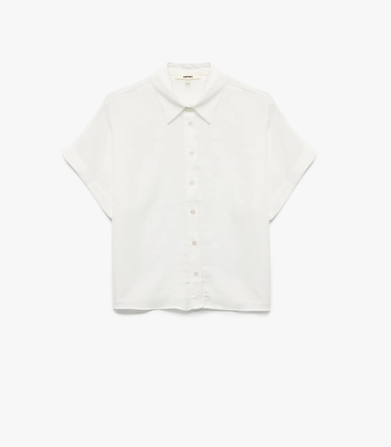 Aerobin fabric short sleeve classic collar satin oversized shirt.
