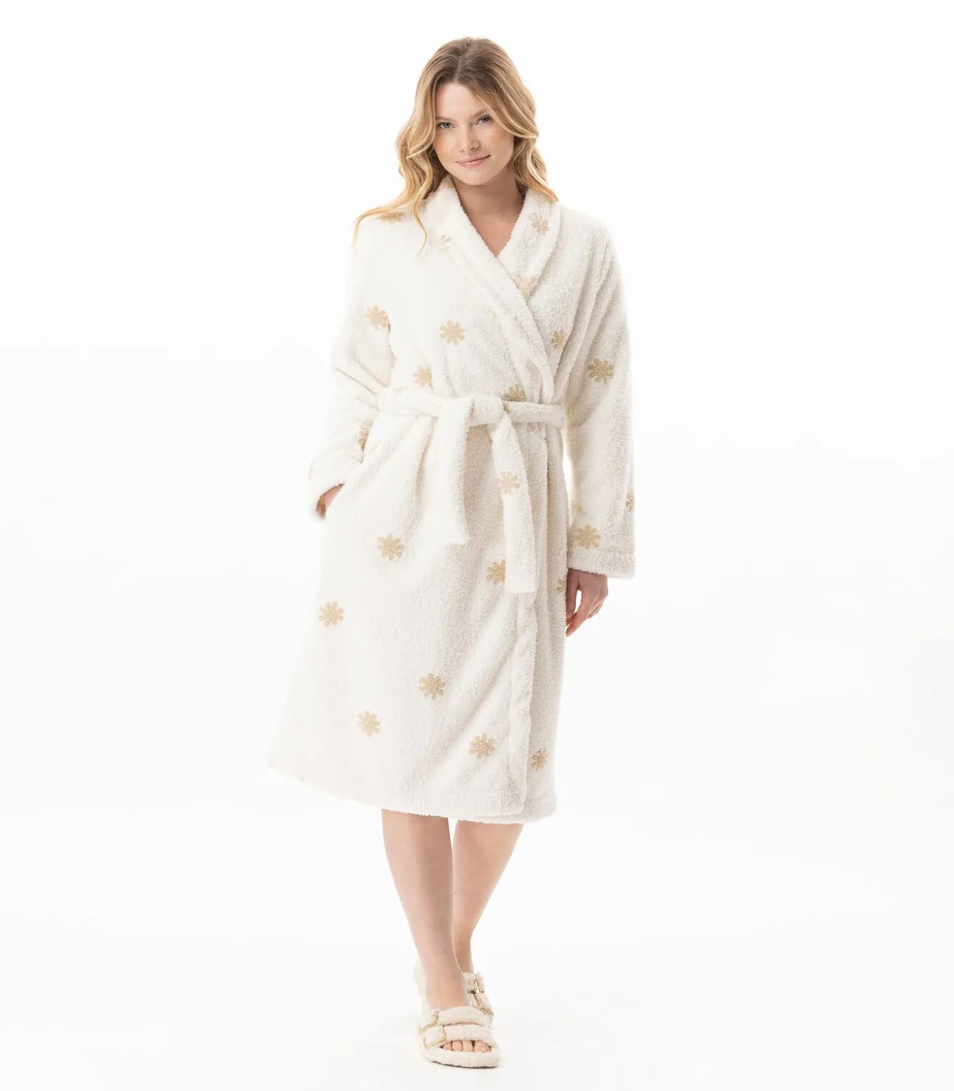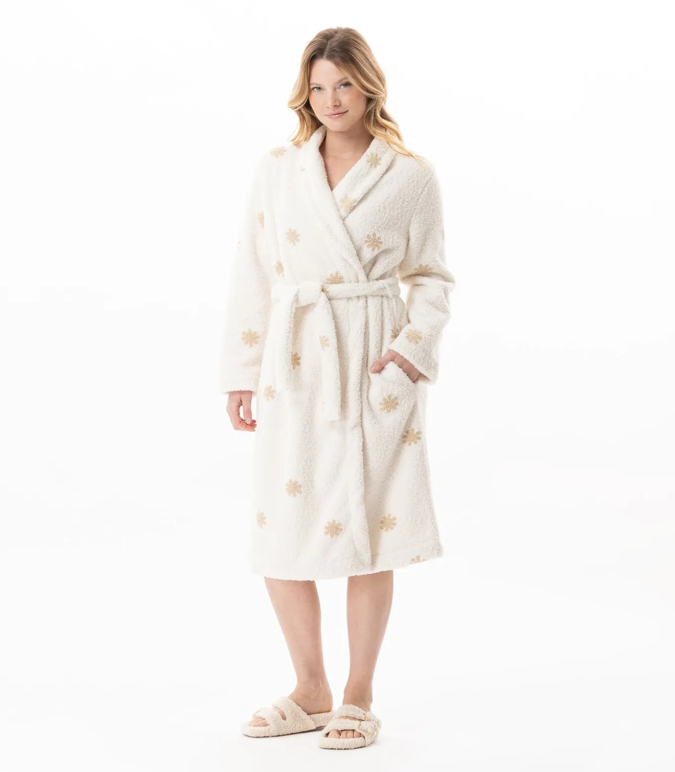 Bij LE CHAT draait de winter om zachtheid en comfort. Fijn geborduurde sterren sieren onze onmisbare wikkelbadjas, die dit seizoen terugkeert in een ultrazacht materiaal, ontwikkeld met onze gespecialiseerde partner in de Loirestreek.