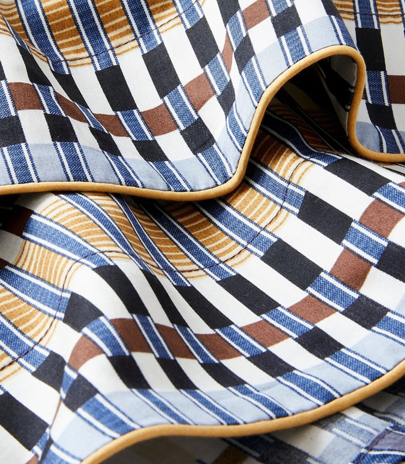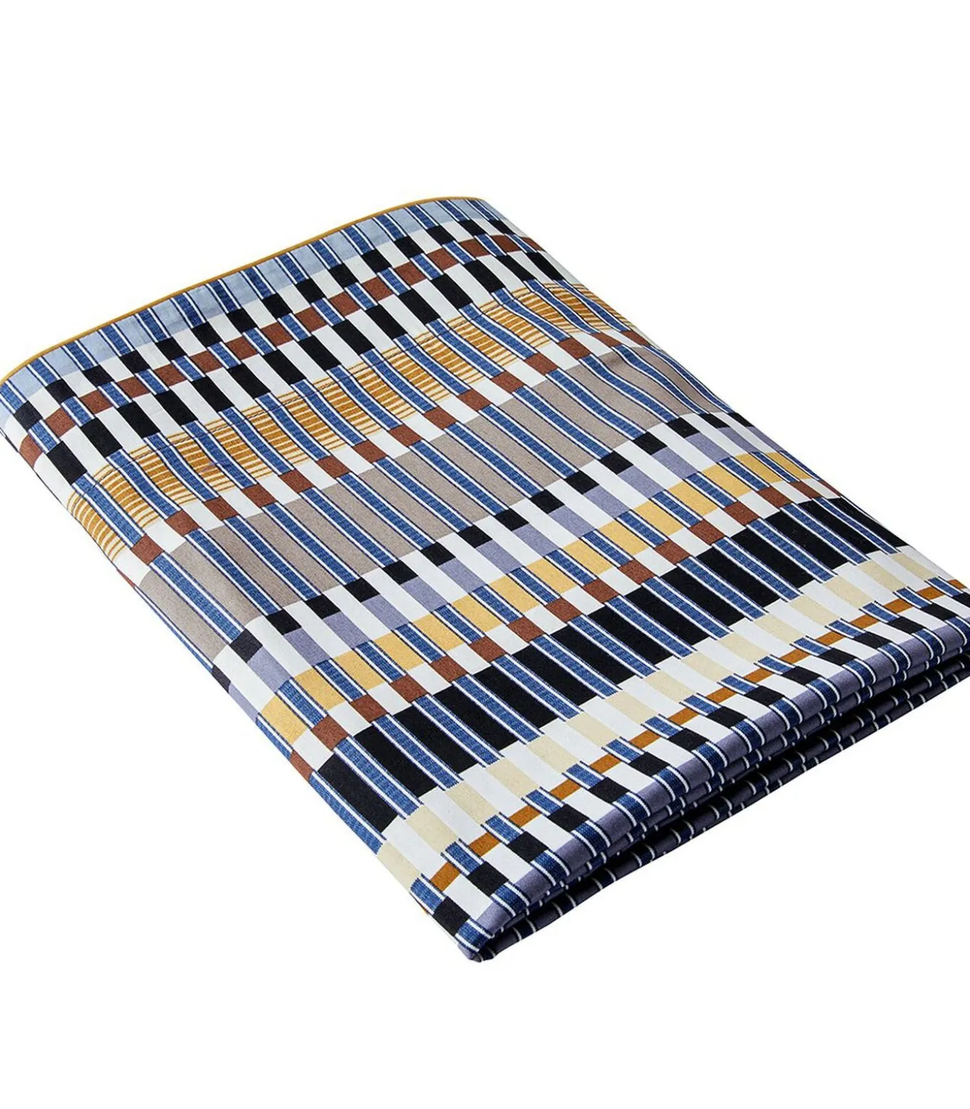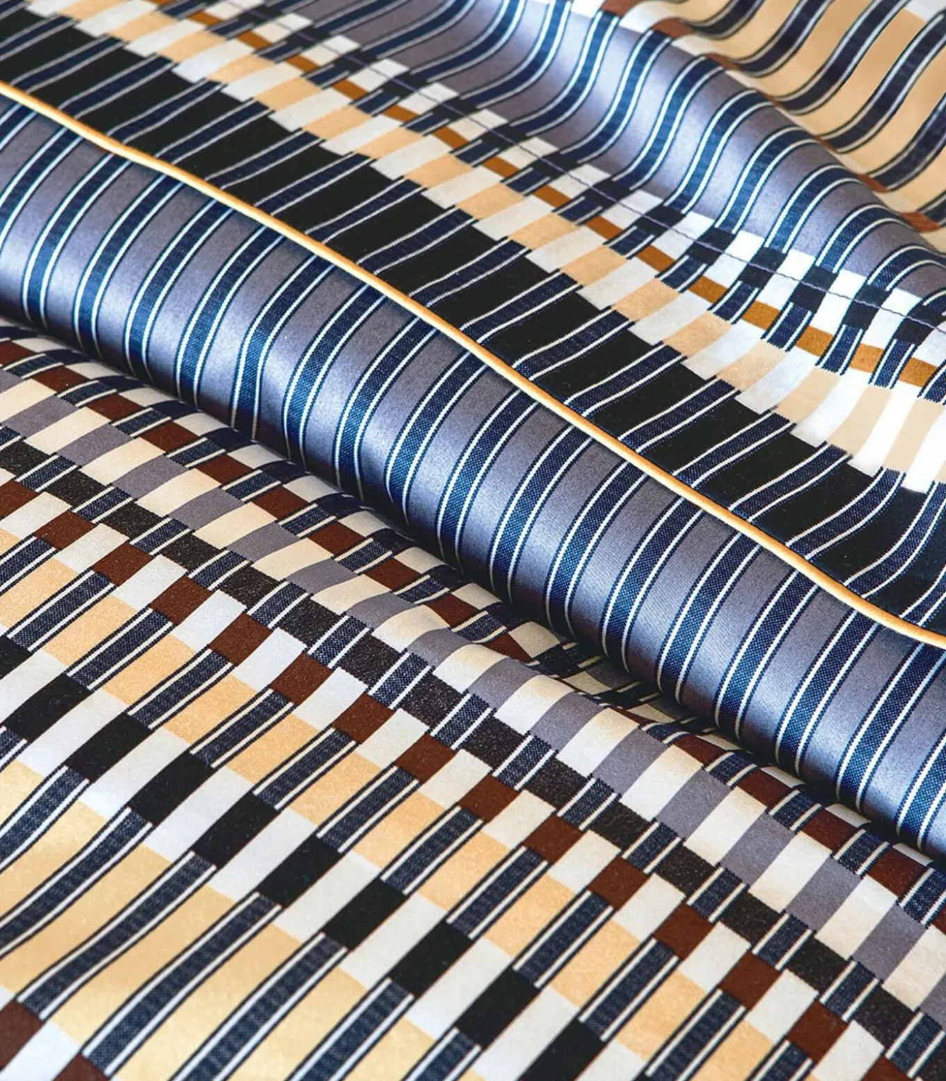 Een intens gekleurde kriskrasstreep wordt gecombineerd met een monochrome streep in parmablauw. Het laken is verkrijgbaar in 2 maten. Een boord is omzoomd met een mooie bies.