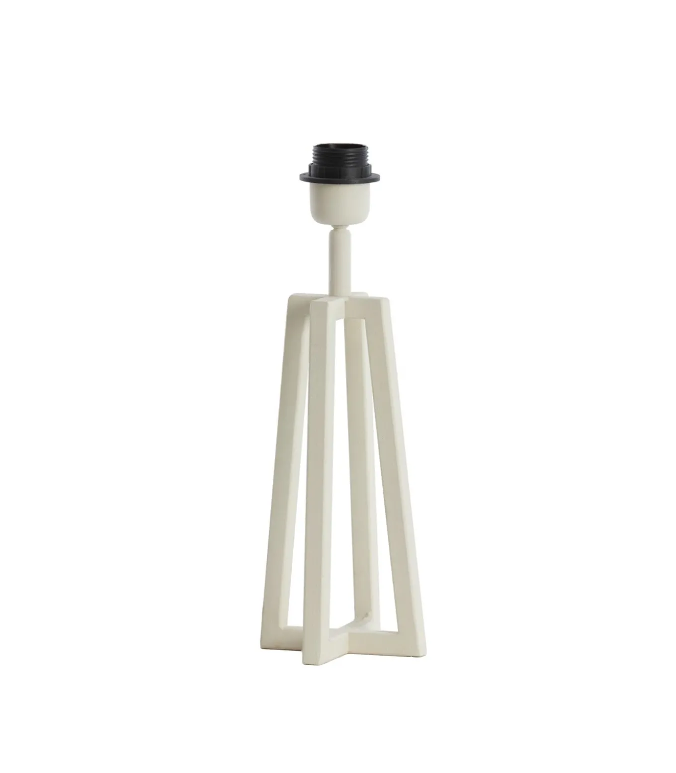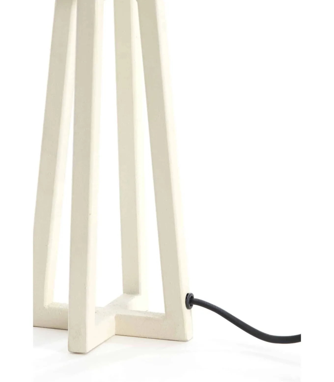 De Miley vloerlamp in crème heeft een unieke gekruiste metalen voet. Met afmetingen van 11,5×11,5×31 cm geeft hij een unieke touch aan je woonkamer. De vloerlamp wordt geleverd zonder lampenkap, zodat je de lamp kunt personaliseren met elke kap naar keuze.