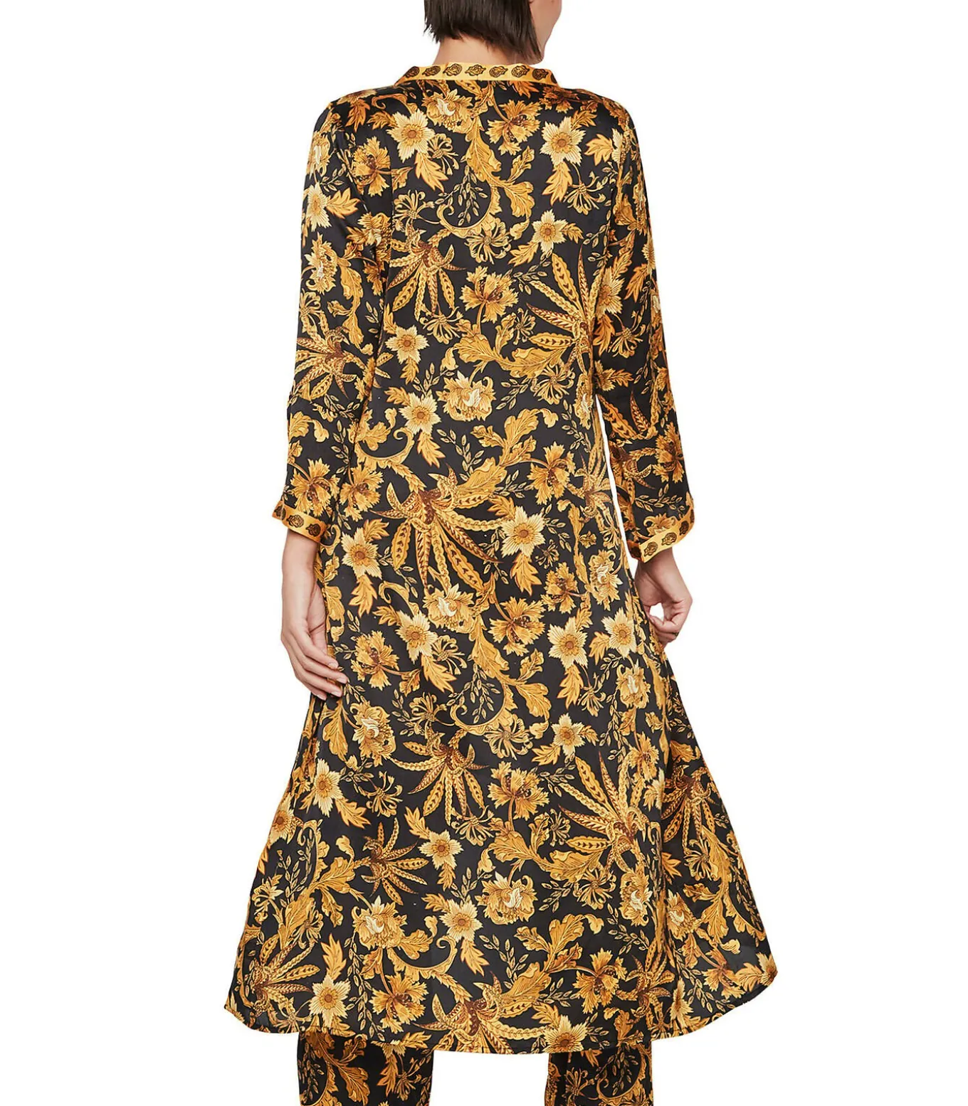 Prachtig negligé met lange mouwen en een koordje onder de buste, waardoor het aan de voorkant gedeeltelijk gesloten kan worden en een prachtige V–halslijn creëert. De rijke bloemen– en plantenprint in combinatie met levendige kleuren en randen in Provençaalse stijl brengt je terug naar een zomerse plattelandssfeer en helpt je de warmte van je zonvakantie te verlengen.[Jurk wordt apart verkocht. Pyjama’s en andere accessoires die het model op de foto’s draagt, zijn niet inbegrepen].