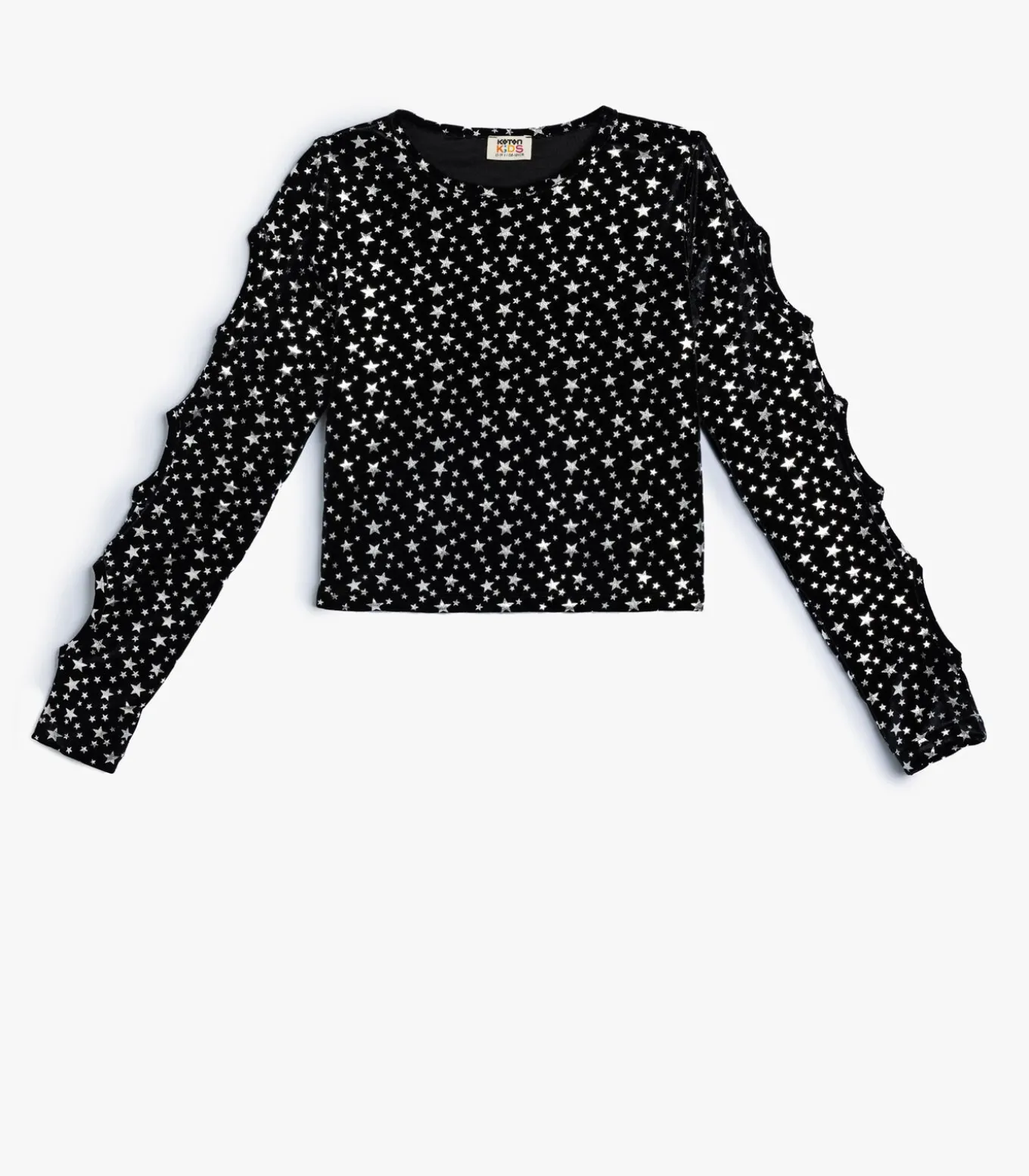 Venster gedetailleerd uitgesneden Ster Strak zonder zak Crop lengte Gedrapeerde mouw Lange mouw Ronde kraag Blouse