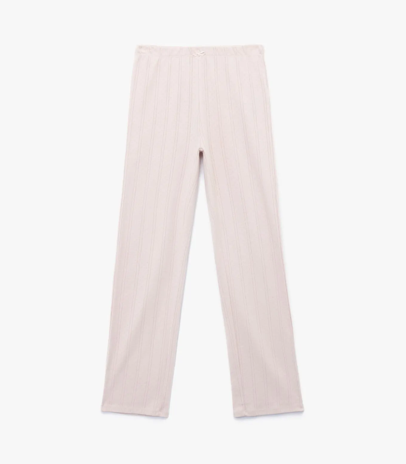 Ervaar het comfort van deze lange pijamabroek, gemaakt van 100% katoen. Het zachte materiaal en de normale taille zorgen voor ultieme bewegingsvrijheid gedurende de nacht. Het eenvoudige ontwerp wordt extra charmant door een subtiel fionkdetail aan de taille, wat een speelse touch toevoegt aan je nachtelijke outfit. Combineer deze broek met een comfortabel T–shirt of een warme badjas voor extra knusheid tijdens koude nachten.