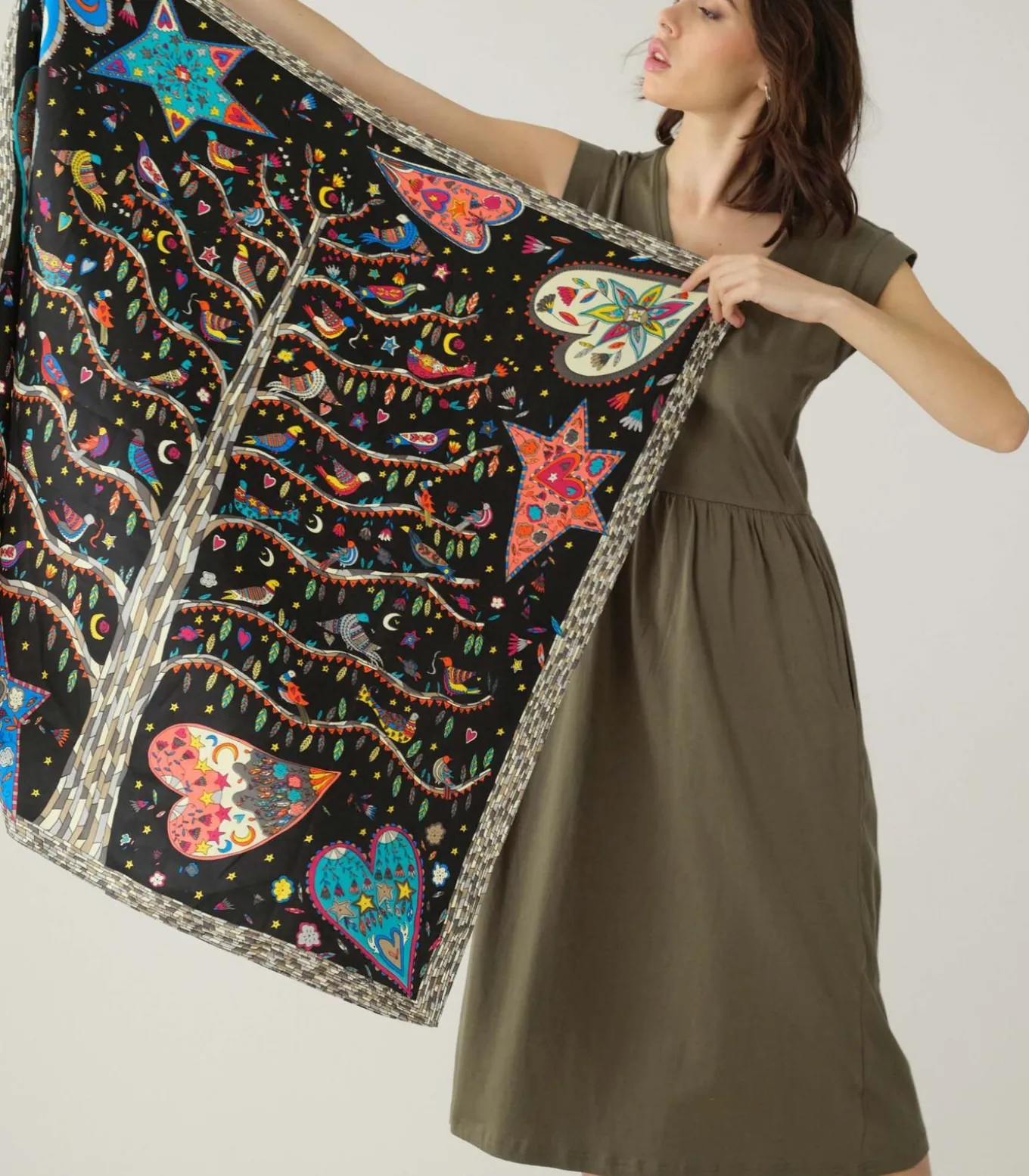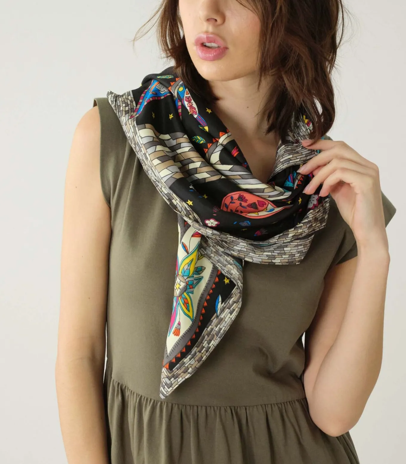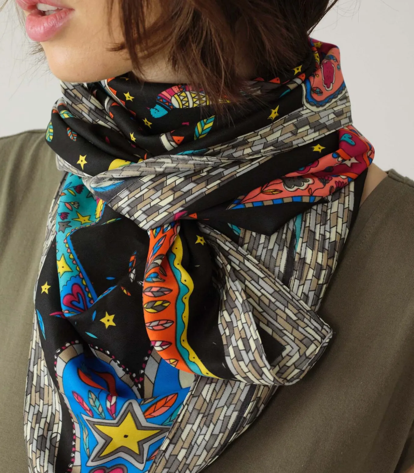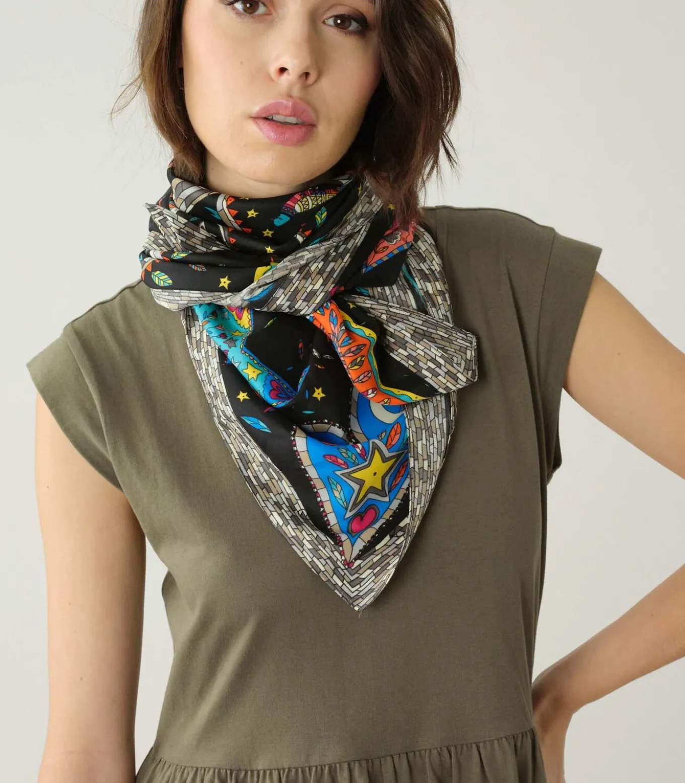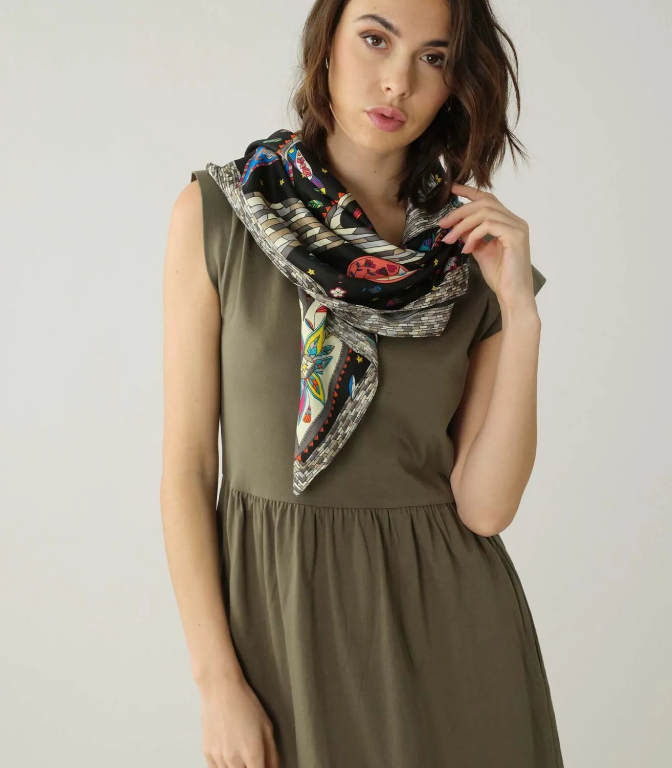 Sjaal met geometrisch patroon. Kleurrijke LAVINIA–sjaal.