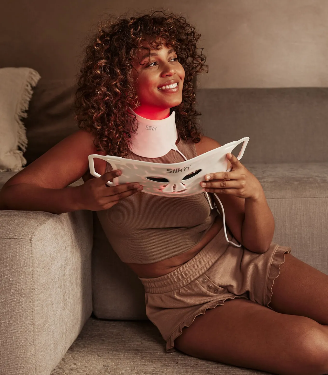 Een van de plekken die vaak vergeten wordt, maar toch erg belangrijk is voor een jongere uitstraling is de nek. Geef je nek daarom een boost met LED–licht. Silk’n LED Neck Mask werkt met rood, blauw, geel en paars LED–licht om zo onder andere fijne lijntjes, rimpels, de huidelasticiteit, pigmentatie en de huidtextuur aan te pakken. Voor een jonger uitziende en stralende huid.