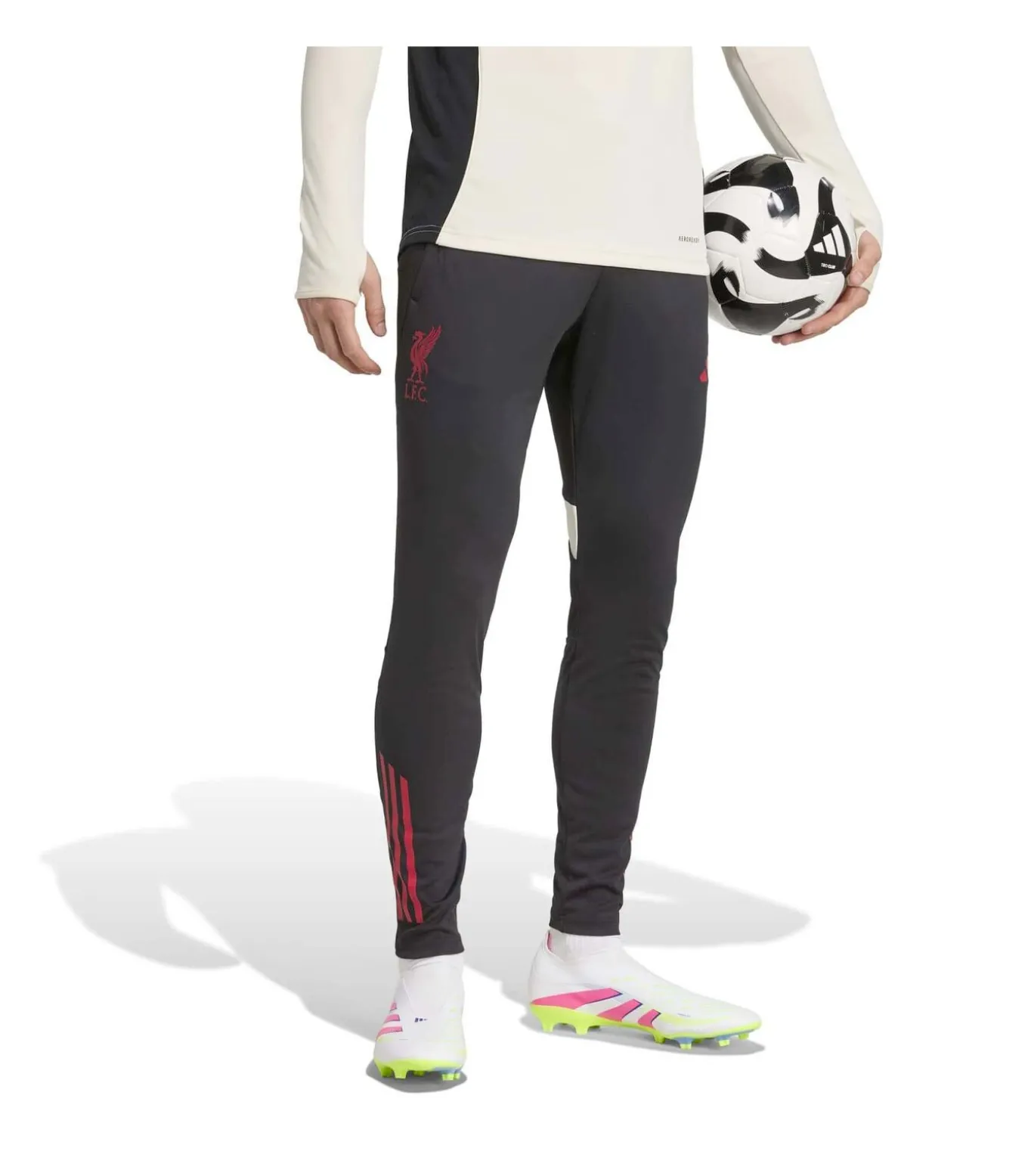 Kleur: zwart. Samenstelling: 100% gerecycled polyester. Pasvorm: slank. Sluiting: elastische tailleband met trekkoord. Details: zakken met rits, stretchmateriaal voor maximale bewegingsvrijheid, thermisch aangebracht Liverpool FC–embleem, ademende Aeroready–technologie. Duurzaamheid: volledig gemaakt van gerecycled polyester om afval en het gebruik van niet–hernieuwbare grondstoffen te verminderen. Gebruik: officiële Liverpool FC 25/26 trainingsbroek, ideaal voor training en vrije tijd.