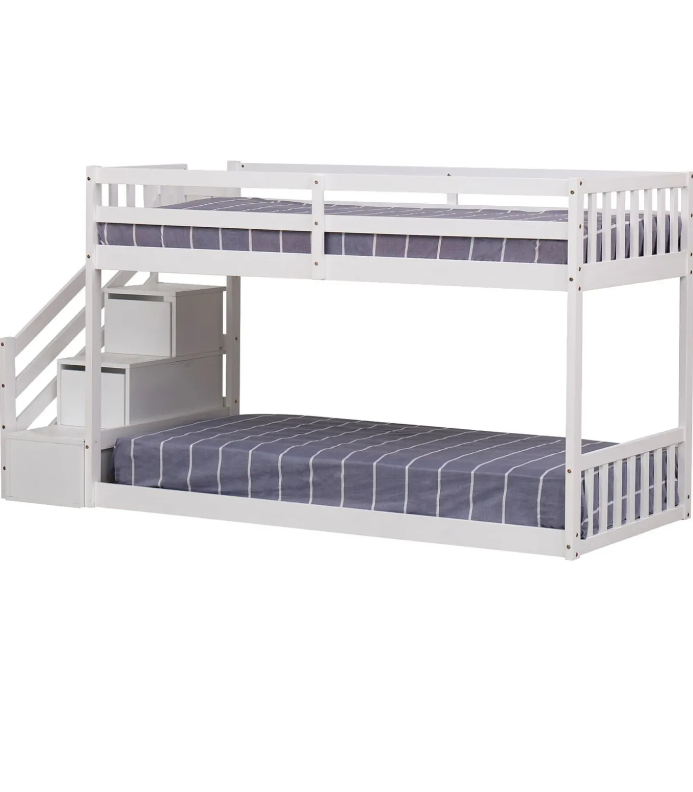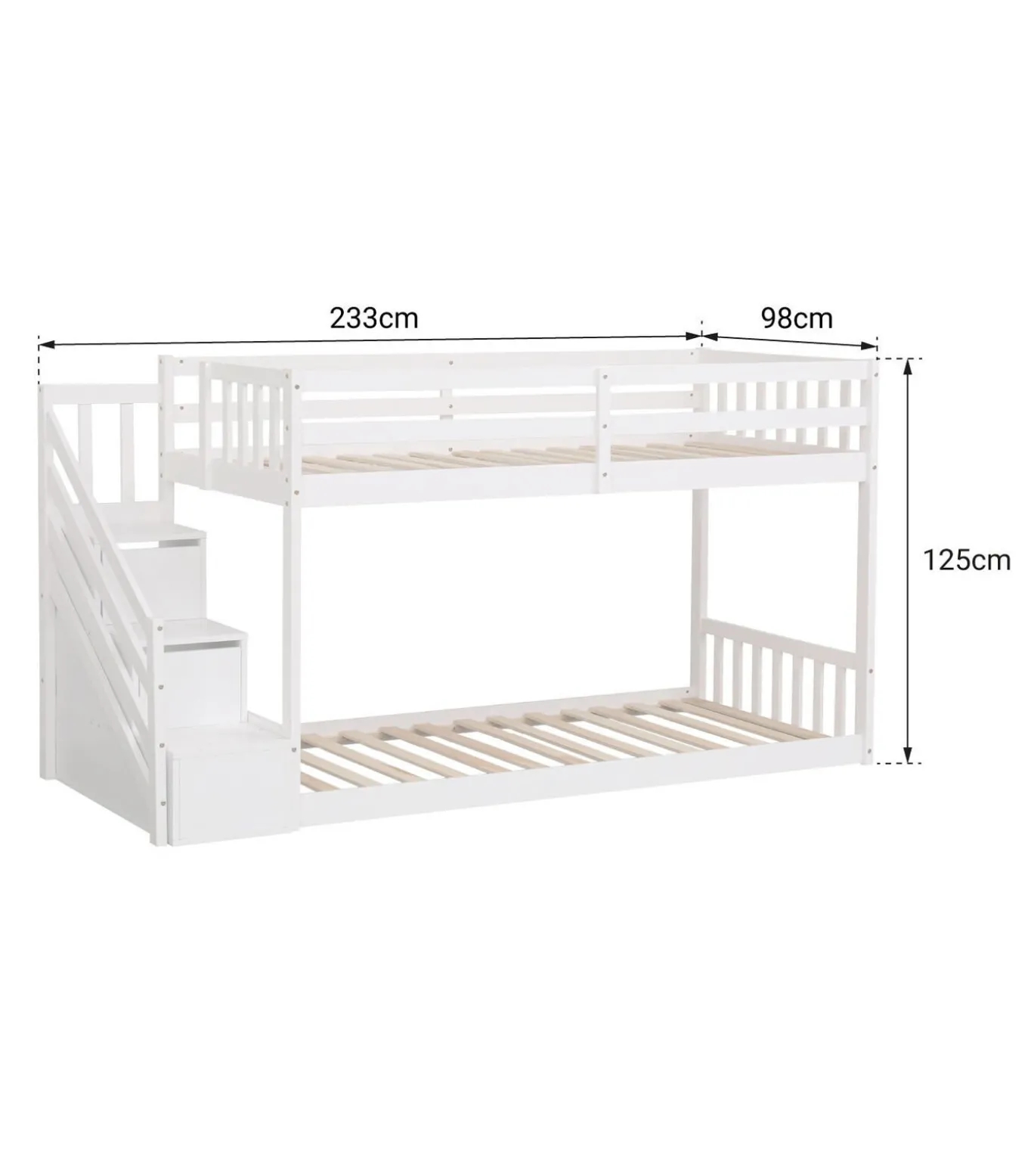 Creëer een slim slaapgedeelte dat de inrichting van uw kinderkamer optimaliseert met Happy Garden. Het witte CELESTINE kinderbed heeft standaard afmetingen van 190 x 90 cm en biedt plaats aan twee jonge kinderen in dezelfde kamer. Comfortabel en veilig, het bevordert een zachte slaap terwijl het ruimte bespaart. Om in het bovenste bed te komen, kan het kind veilig de trap opklimmen die voorzien is van een leuning. Het heeft ook twee ladebakjes voor extra opbergruimte voor kleding of speelgoed. Dit stapelbed met 2 bedden is dus het ideale meubelstuk om de slaapkamer van uw kleintjes gemakkelijk in te richten en hen een goede nachtrust te garanderen.