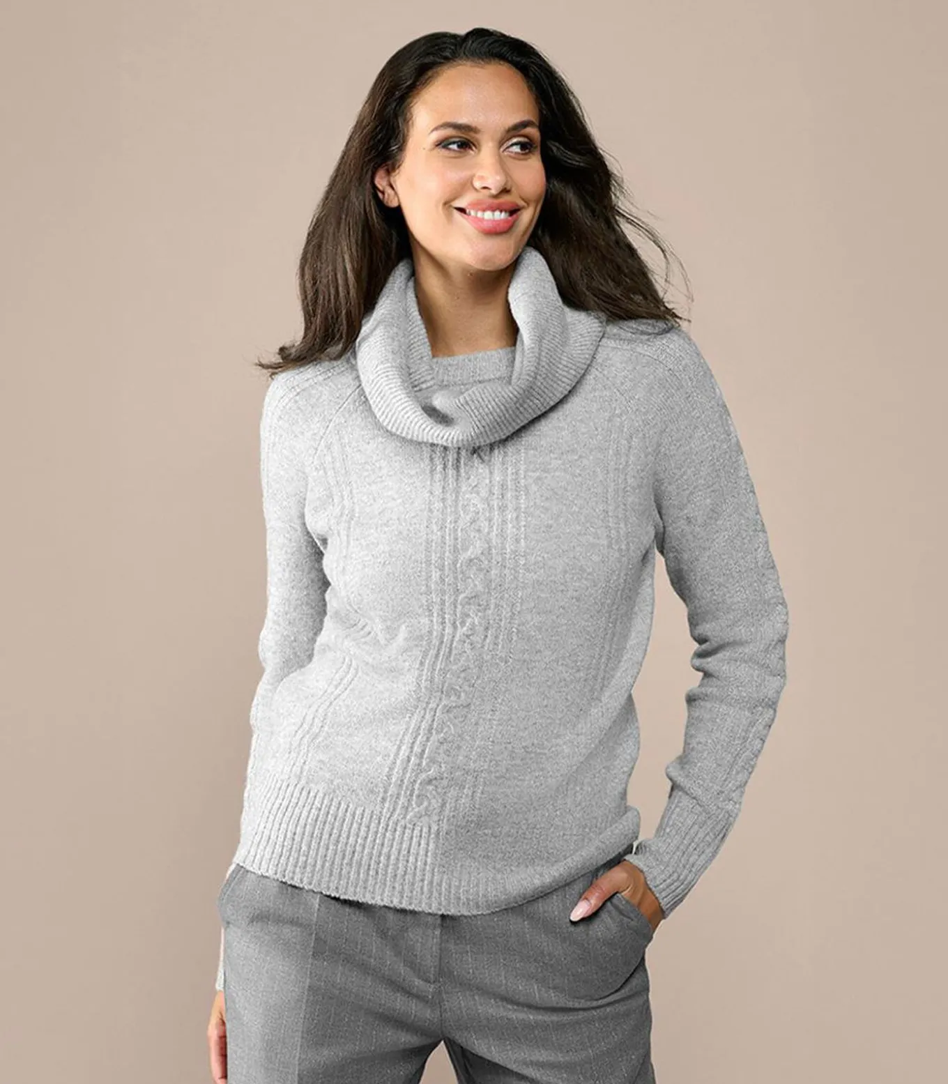De Liv lurex trui is een stijlvolle essential voor je wintercollectie. Met zijn combinatie van luxe materialen en comfortabel design voegt deze trui direct elegantie toe aan je look. Lange manchetten, gehaakte banen en de afneembare col maken het mogelijk om de trui op diverse manieren te dragen. Het grijze kabelbreisel is verfijnd met glinsterende lurexdraden en brede ribboorden aan de onderzijde en bij de polsen. Het heuplange, kortere model geeft een eigentijds silhouet. De col, met een subtiel knoopje aan de achterkant, is eenvoudig afneembaar: zonder col oogt de trui nonchalant en vrouwelijk, mét col biedt hij extra warmte tijdens frisse dagen. De rijke materiaalmix, waaronder zachte wol, geeft de glittertrui een behaaglijke en luxe uitstraling. Deze veelzijdige trui combineert gemakkelijk: draag hem met een elegante pantalon, zoals de Rosely lurex broek in grijs, voor een verfijnde look, of met een rechte jeans voor een casual twist. De lichtgrijze Liv lurex trui is daarmee een onmisbaar item voor het najaar voor iedereen die houdt van stijl, comfort en een subtiel vleugje glamour.