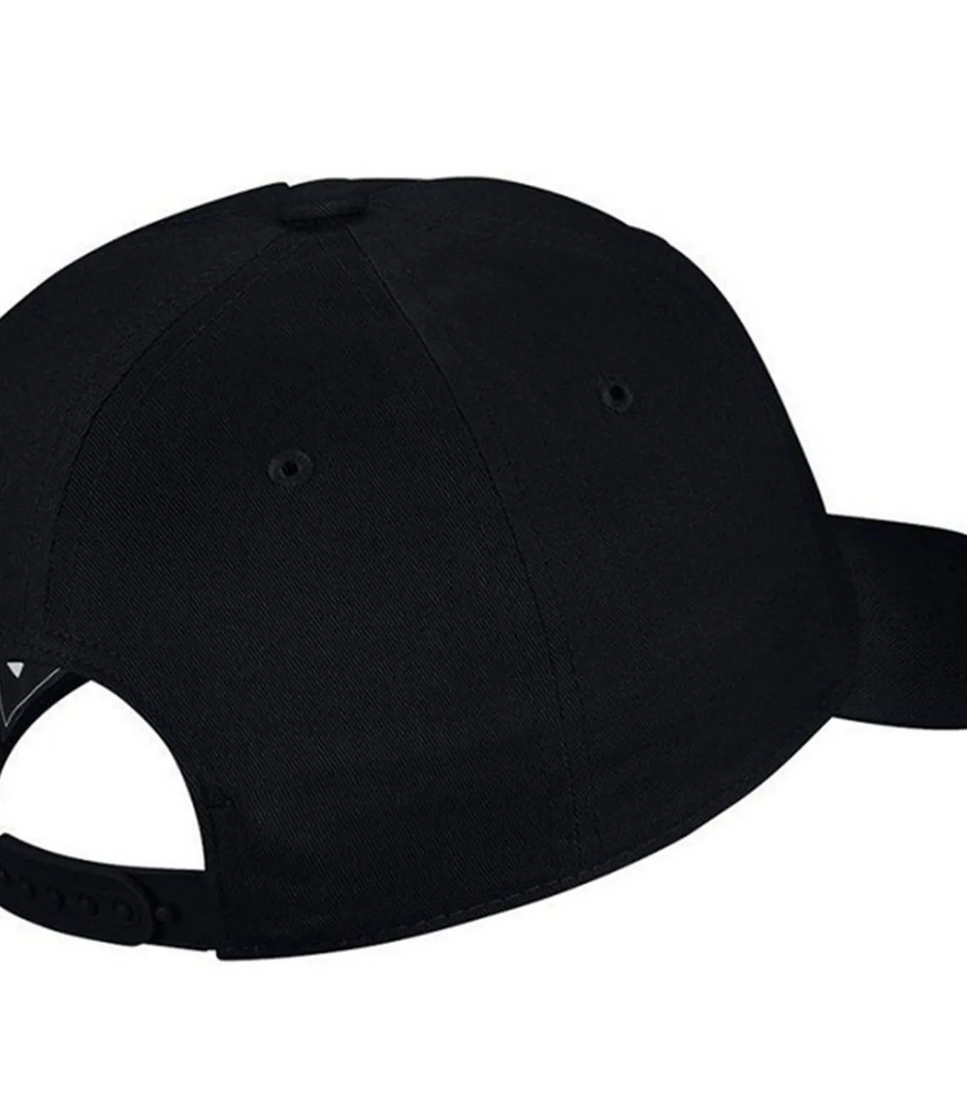 Adidas–merkkap met zwarte logo, volledig van katoen gemaakt. De huidvoeling is zacht en keperstof. Het ontwerp draagt het merklogo, 4 rijen stiksels, een 6–paneel ontwerp, een knoop bovenaan, een voorbuigende piek en gestikte oogjes. De katoen wordt verwerkt met duurzame en lichtgewichtstechnologie. Het heeft een verbouwbaar en Snapback sluiting.
