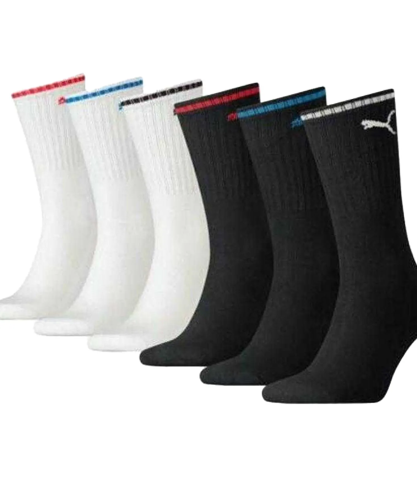 Puma Witte Sokken met de Simpele en Eindigdont Logo–ontwerp, gemaakt van 76% Katoen, 21% Polyester, 2% Elastodieen en 1% Elastaan. Deze sokken hebben een zacht voelende stoftechnologie en vertonen contrast op de manchet. Deze Puma–sokken zijn een comfortabele keuze voor iedereen die na sokken zoekt met een eenvoudige en elegante logo–design.