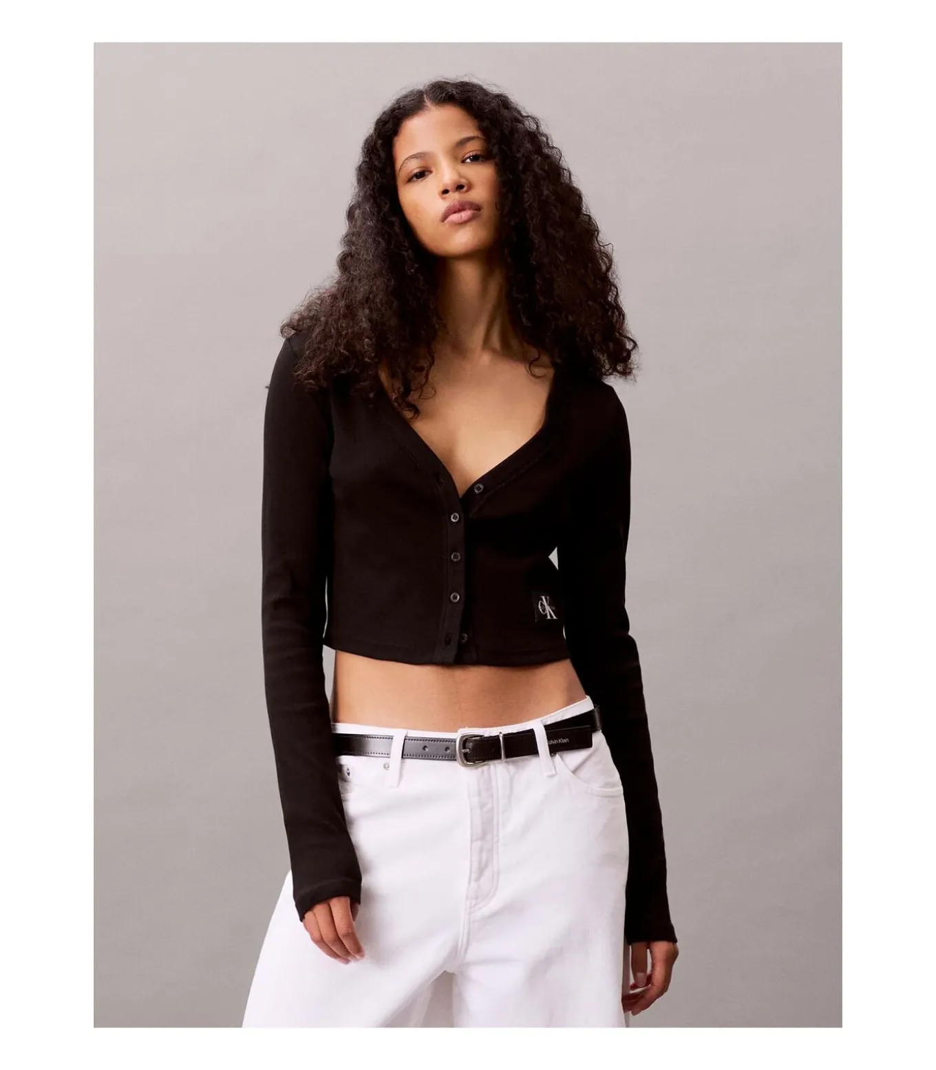 Kleur: zwart. Samenstelling: 94% katoen, 6% elastaan. Mouwen: lang. Halslijn: V–hals. Lengte: kort. Pasvorm: slank. Sluiting: knopen. Details: stretchkatoenen jersey met Lycra® FREEF!T®–technologie, fijn geribbeld, monogramlabel aan de zoom. Gebruik: ideaal voor het completeren van vrouwelijke en veelzijdige looks, perfect te combineren met een high–waist broek of rok.