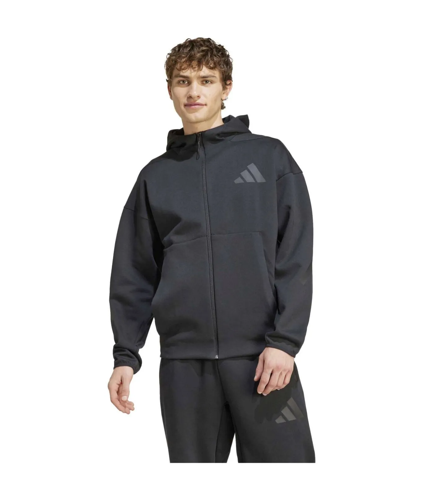 Kleur: zwart. Samenstelling: 57% gerecycled polyester / 43% katoen. Mouwen: lang. Halslijn: capuchon. Pasvorm: normaal. Details: volledige ritssluiting, drielaagse warmtevasthoudende stof, 3 Bar–logo gedrukt in mat rubber, ritszakken aan de voorkant. Duurzaamheid: gemaakt van minimaal 57% gerecycled polyester. Gebruik: ideaal voor vrije tijd en concentratiemomenten, perfect om warmte en comfort te behouden.