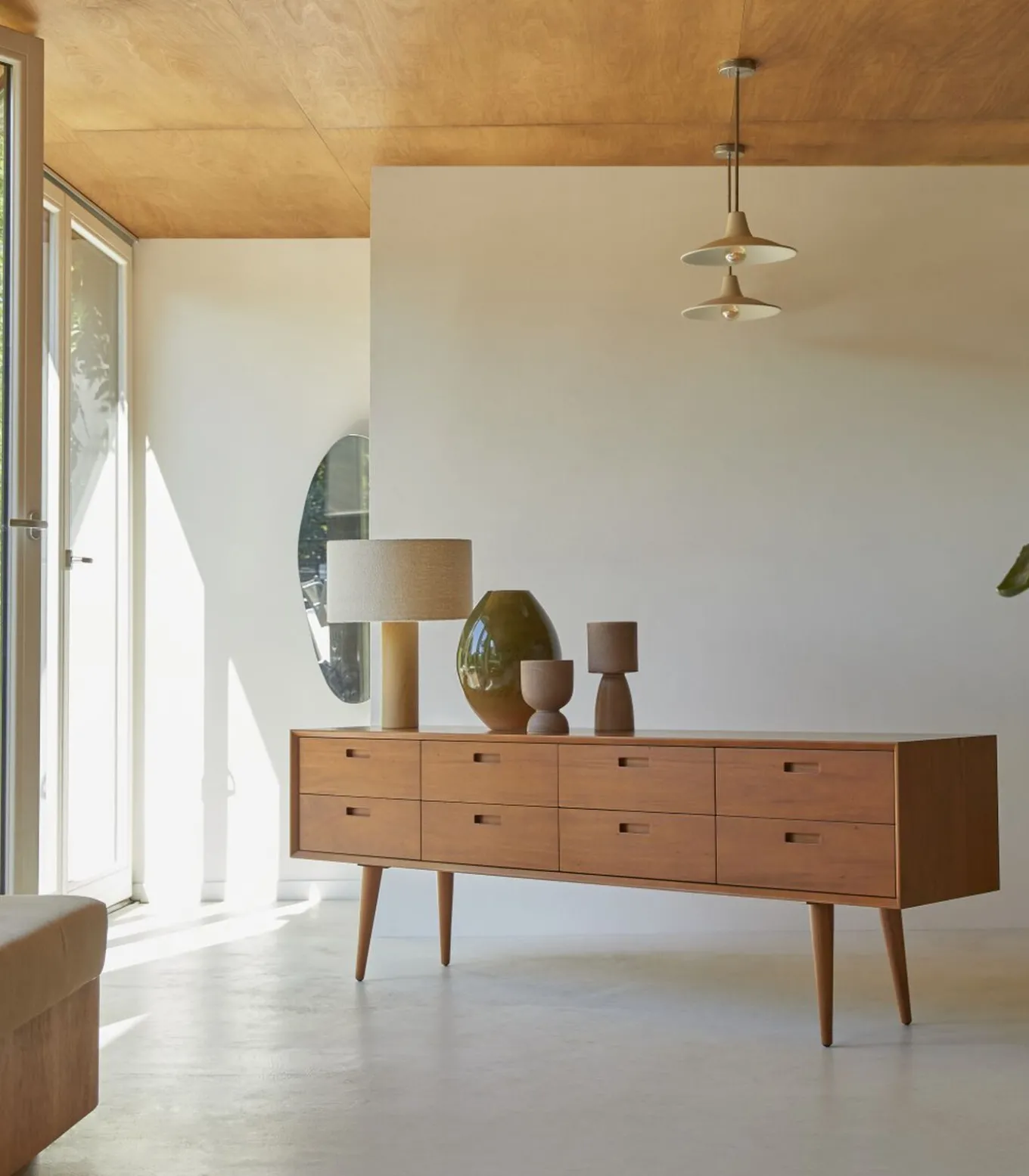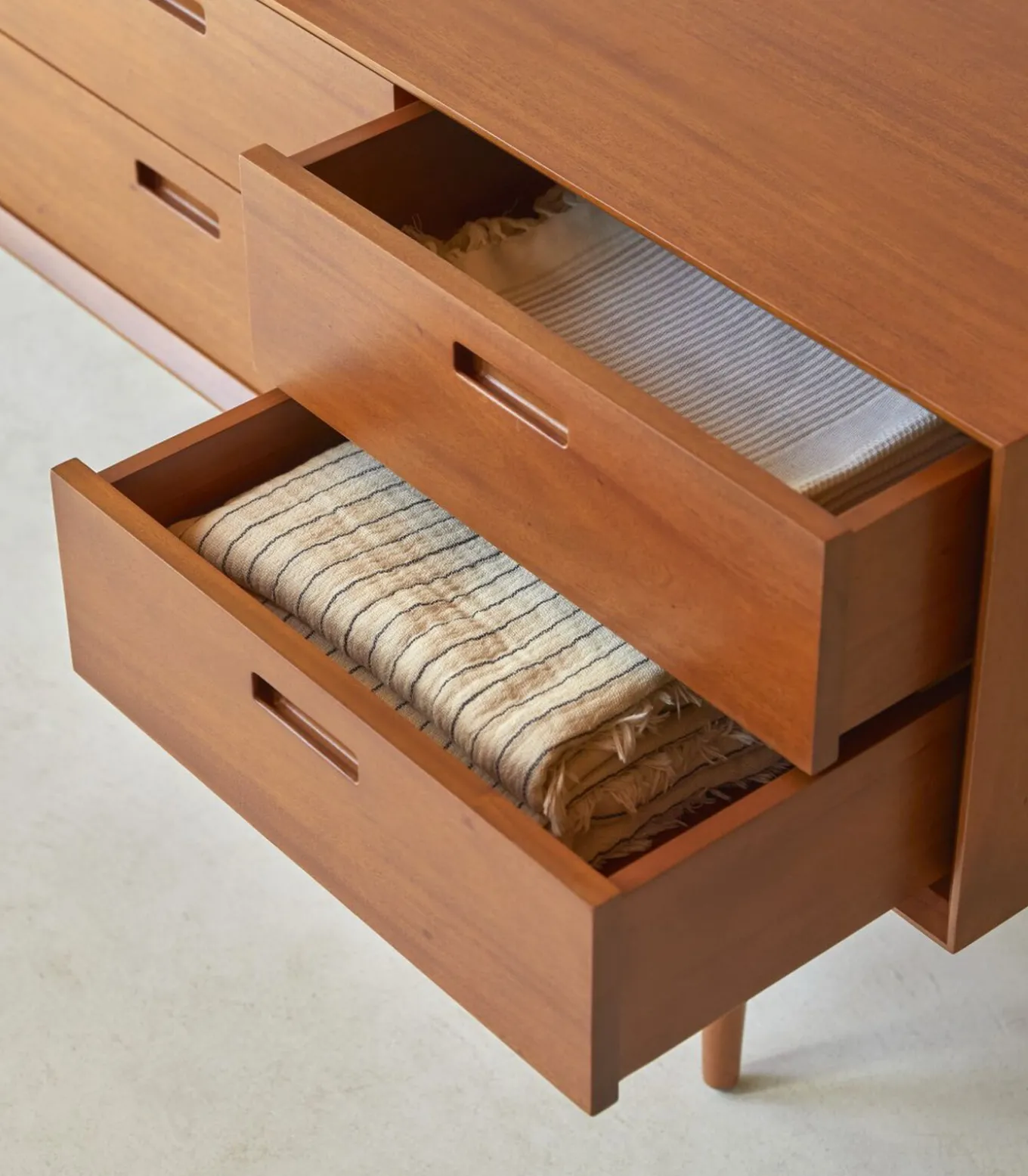 Deze ladekast van FSC® massief mahonie uit Indonesië bestaat uit 8 laden, ideaal om al uw benodigdheden in op te bergen. Geïnspireerd door de jaren 50 voor een vintage chique tintje in uw kamer. De originaliteit zit in het Scandinavische ontwerp, gekenmerkt door de schuine poten.U zult gecharmeerd zijn van het massieve hout dat een warme sfeer garandeert in uw woonkamer. De verfijnde en toch moderne stijl sluit feilloos aan bij de stijl van uw kamer. Onze ladekast is veel meer dan een eenvoudig opbergmeubel. Dit is een echt decoratiestuk voor moderniteit en design in uw kamer.Vul onze Magda ladekast aan met meubels uit dezelfde collectie voor een chique Scandinavische kamer. Ontdek ons assortiment decoratieve accessoires geselecteerd door onze ontwerpers om de kamer te verfraaien. Hier hebben we gekozen voor vazen geometry in zwart, onze ronde vaas Nanou en onze lantaarn Leonti in groen.