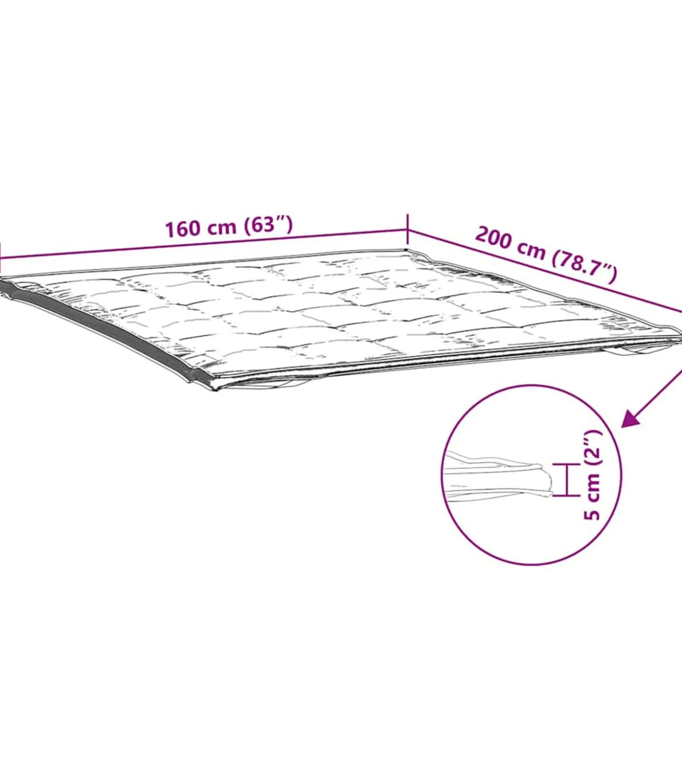 Afmetingen: 160 x 200 x 5 cm (B x L x D)