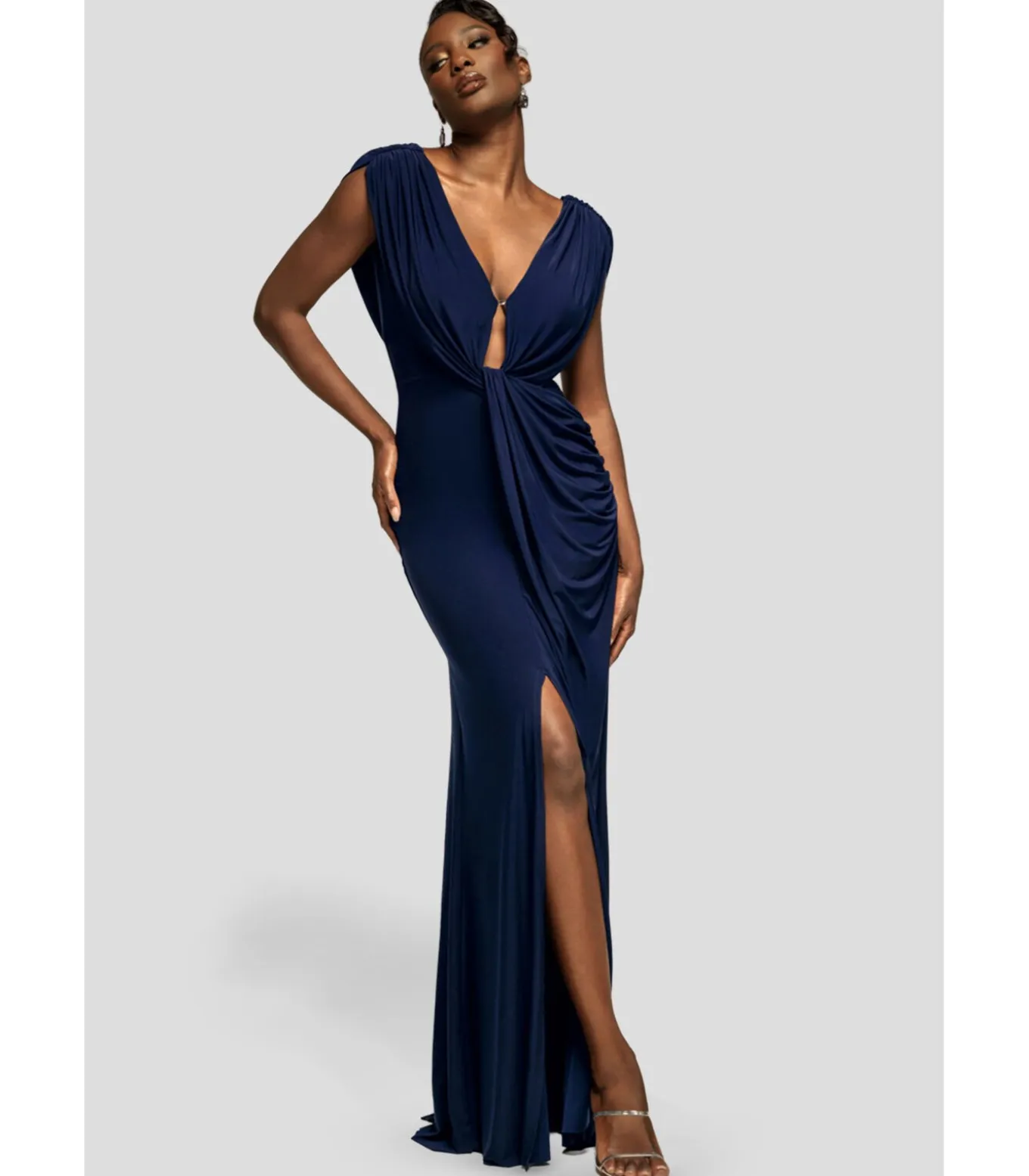 Smaragdblauwe glamour ontmoet Griekse elegantie in de Goddiva Cowl Plunge Draped Mermaid maxi–jurk. Met een diepe V–halslijn en verleidelijke watervalhalslijn aan de achterkant, mouwloos, met een split aan de voorkant en drapering die het silhouet moeiteloos vormgeeft. Het Grecian geïnspireerde ontwerp straalt vrouwelijkheid uit, terwijl het rijke marineblauw een geraffineerde, chique touch toevoegt – perfect voor avondevenementen, cocktailparty’s of glamoureuze evenementen. Deze luxueuze en toch betaalbare jurk is gelimiteerd in oplage en veelzijdig. Je kunt hem dragen naar verjaardagen, soirees of speciale gelegenheden waar je er moeiteloos verleidelijk uit wilt zien. Combineer hem met opvallende hakken voor een verbluffende look die van elke avond een modemoment maakt.